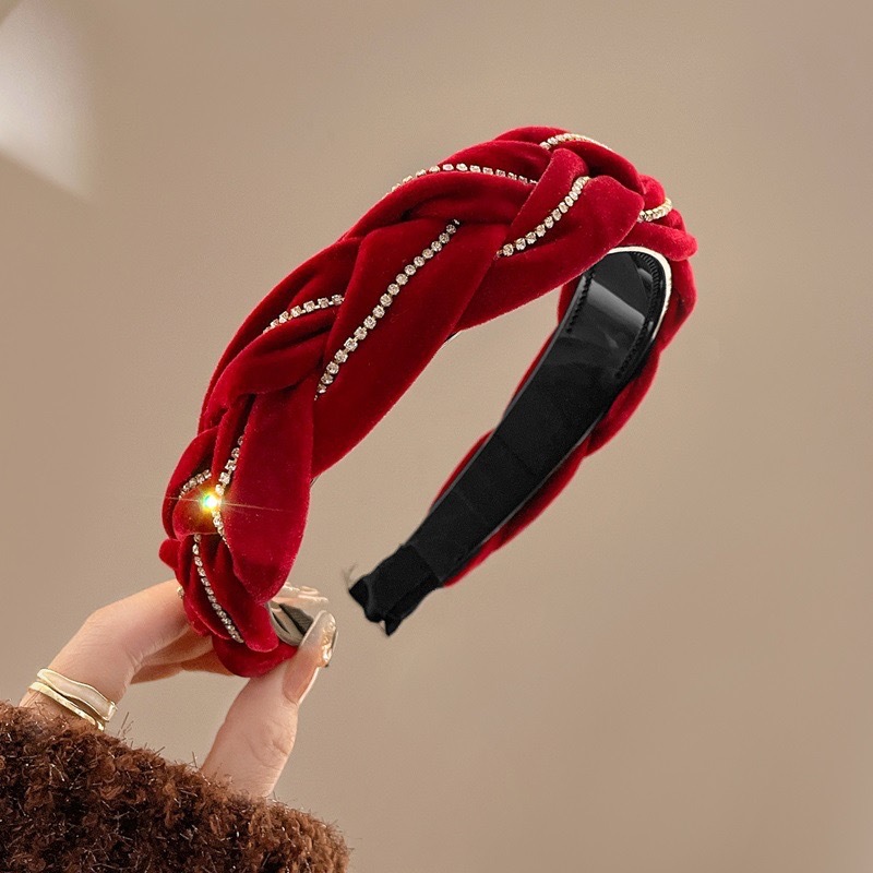 로즈 조 고급 블랙 니트 가을과 겨울 고급 센스 레드 헤드 밴드 여성의 새로운 머리띠 빈티지 헤어 카드 헤드웨어