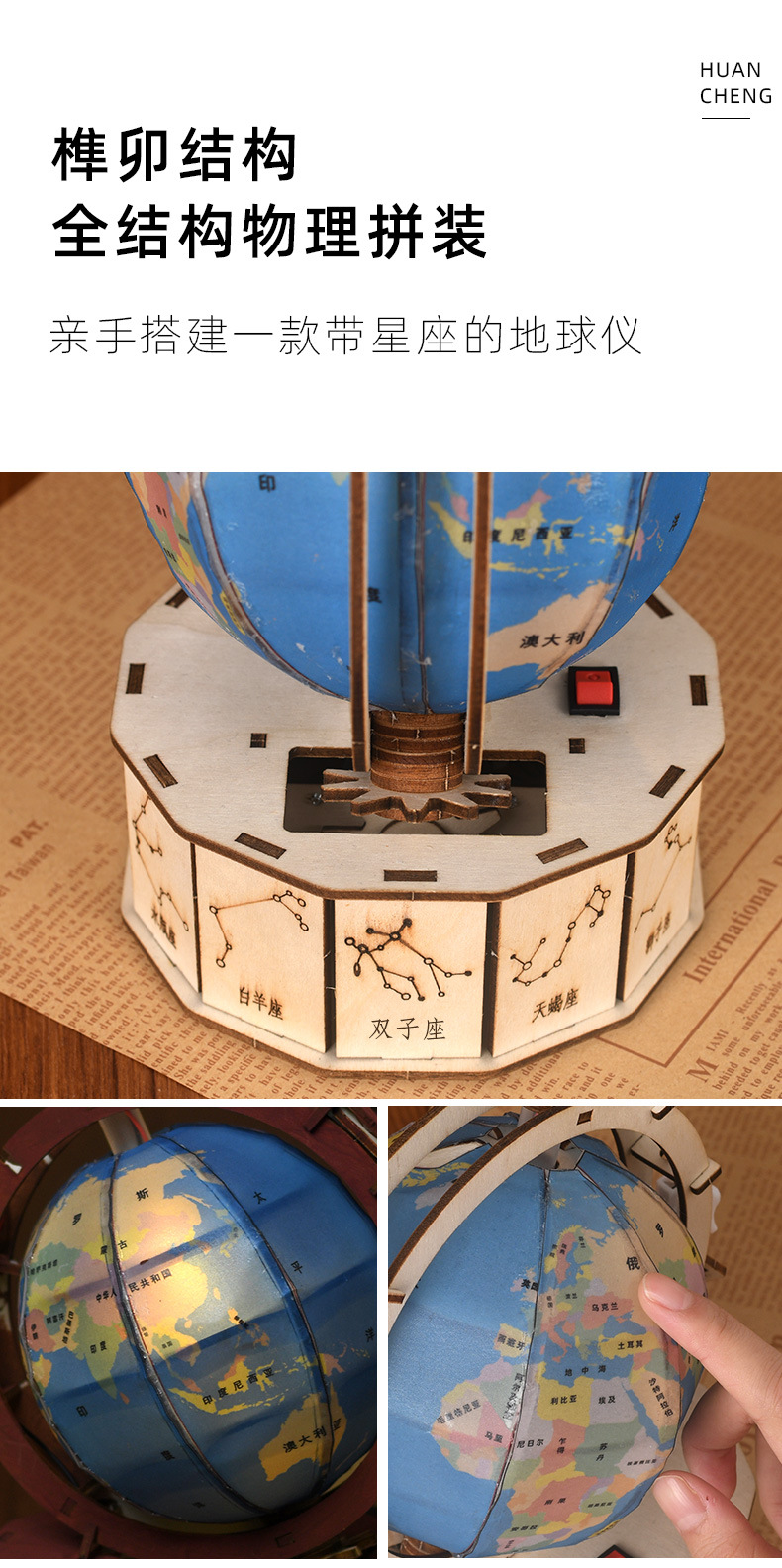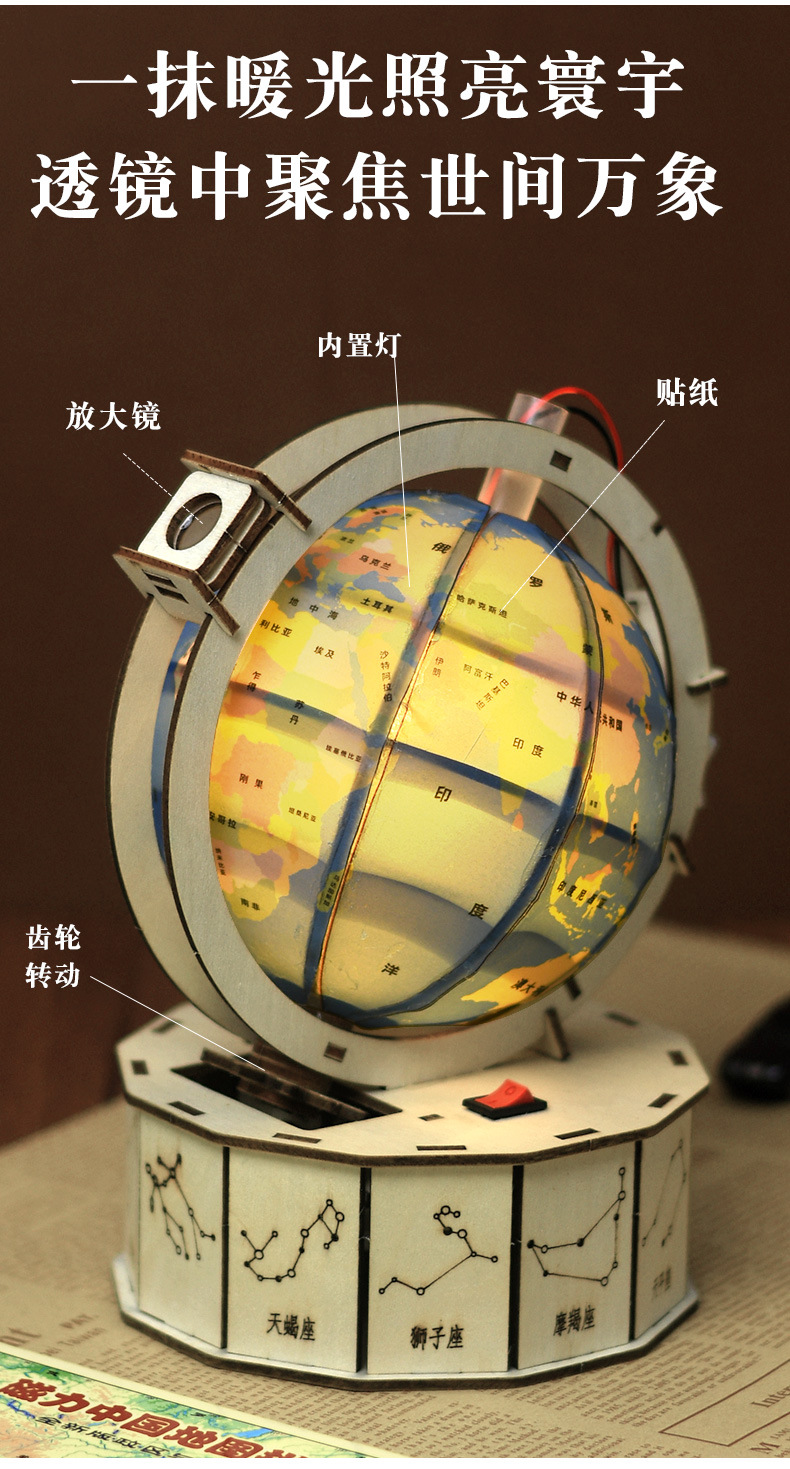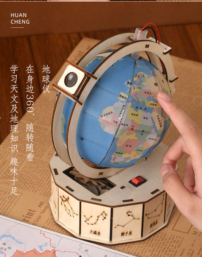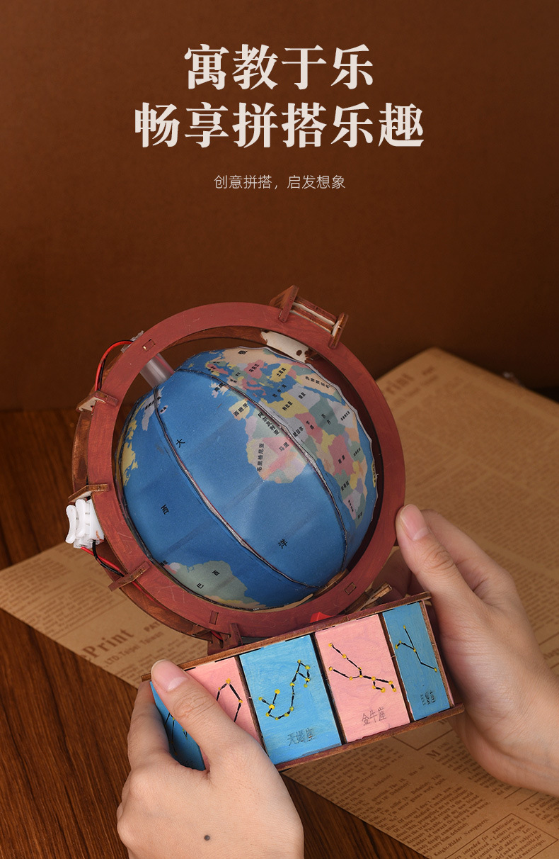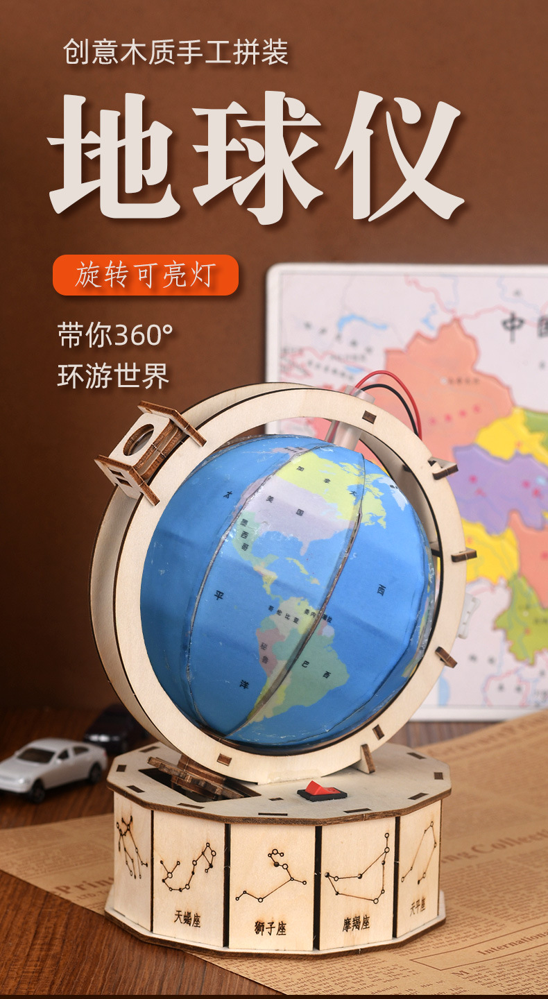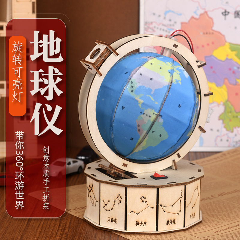 겨울방학 DIY 과학공예 지구본 장식품 선물 어린이 과학실험 지구본 나무 조립식
