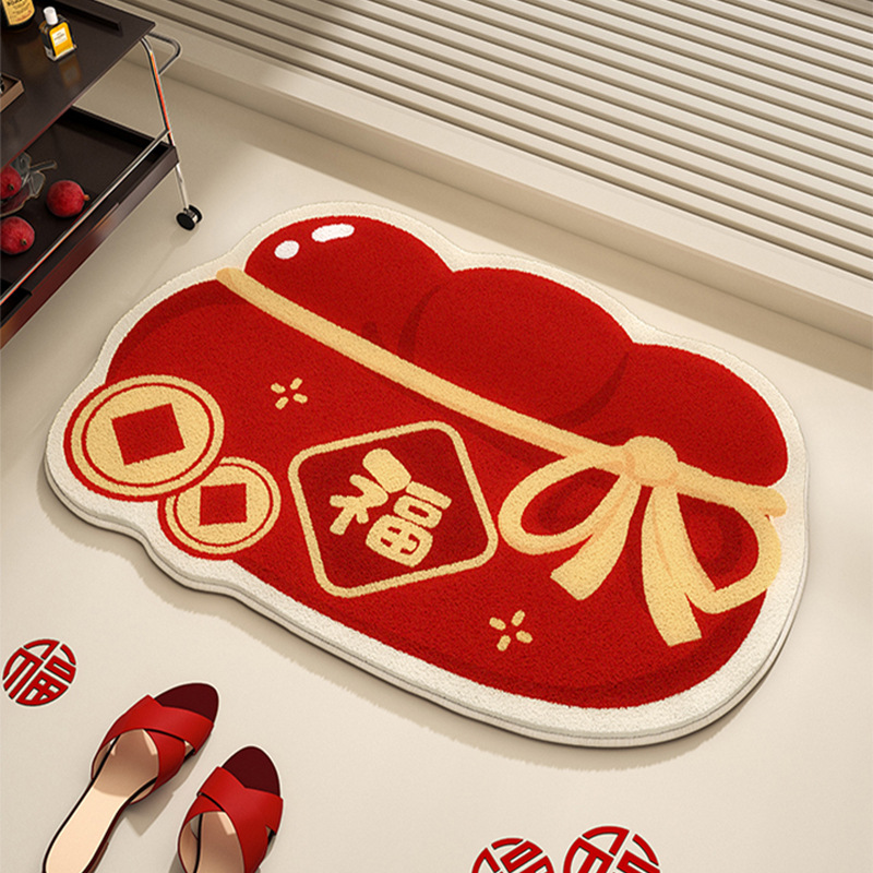 축제 빨간 돈 가방 욕실 화장실 문 물 흡수성 비 슬립 바닥 매트 가정용 재고 헤어 매트