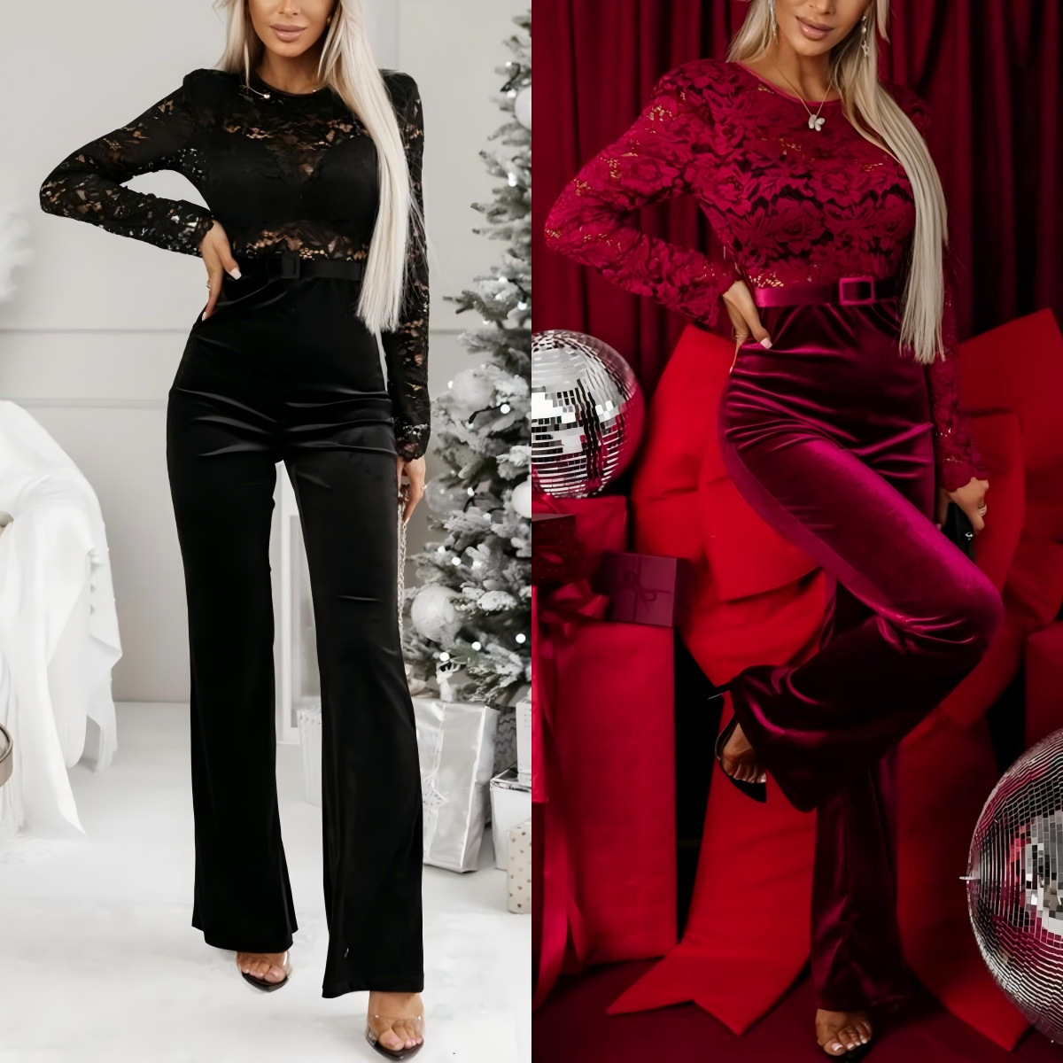 유럽과 미국의 2025 아마존 국경 간 봄 새로운 백리스 슬림 레이스 스티칭 긴 소매 점프 수트 여성 NT3472스토어 가기