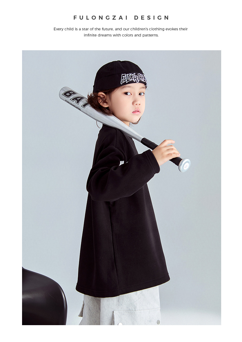 FULONGZAI 부모-자식 아동복 가을, 겨울 새로운 스타일 소년과 소녀 중대형 어린이 벨벳 두꺼운 티셔츠 유행