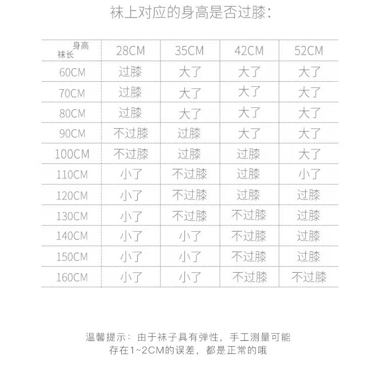 尺码:四个尺码,长约28CM左右,长约35CM左右,长约42CM左右,长约52CM左右,具体过不过膝,请参考最底下的身高参考图。