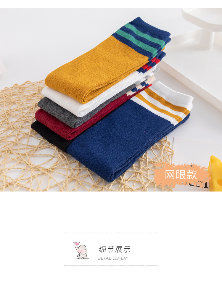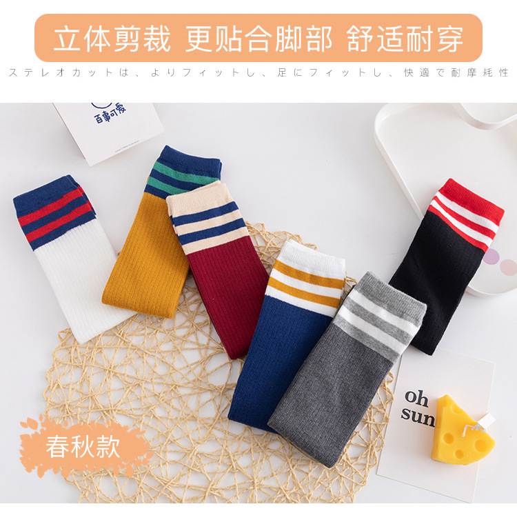 特点:时尚竖条袜,彩色百搭,潮流公主袜,既可当中高长筒袜,又可当堆堆袜,仿无骨缝头,不硌脚