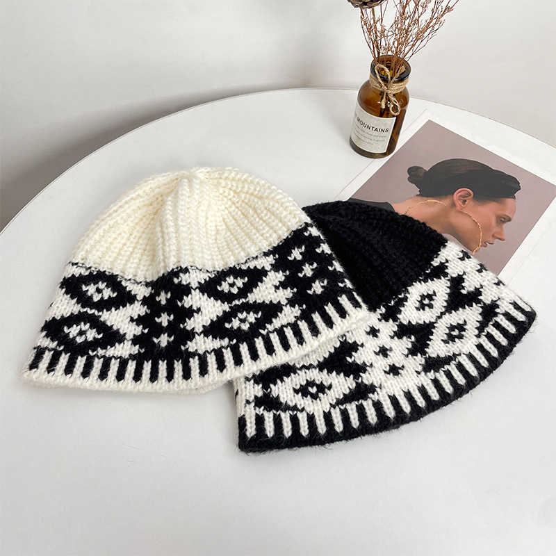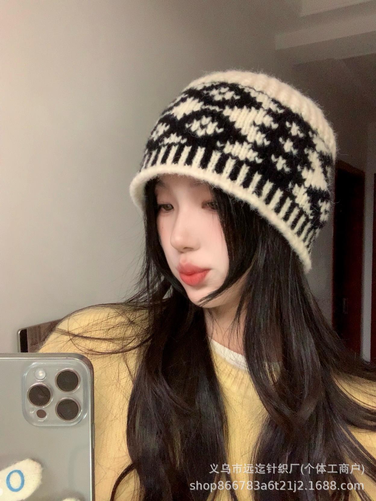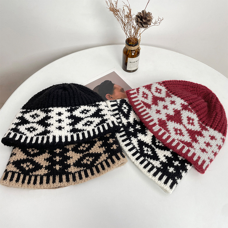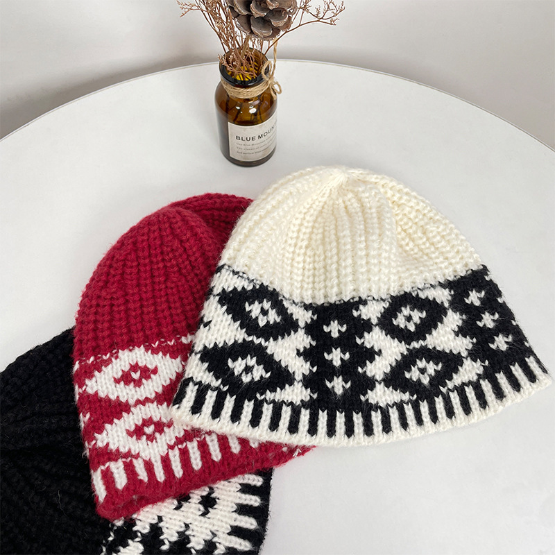 레트로 마름모 컬러 매칭 울 모자 가을과 겨울 틈새 디자인 따뜻한 모자 조커 니트 어부 모자 도매스토어 가기