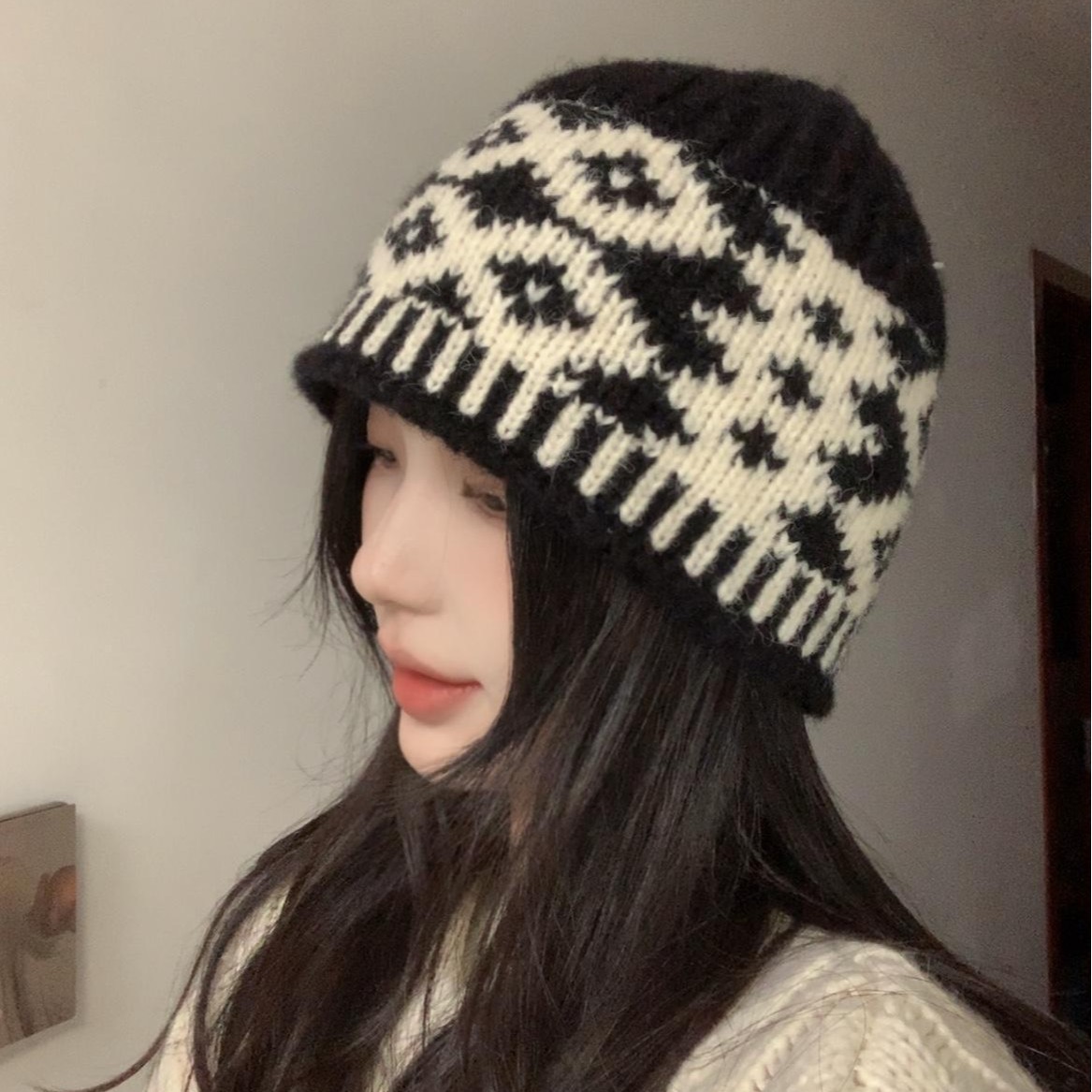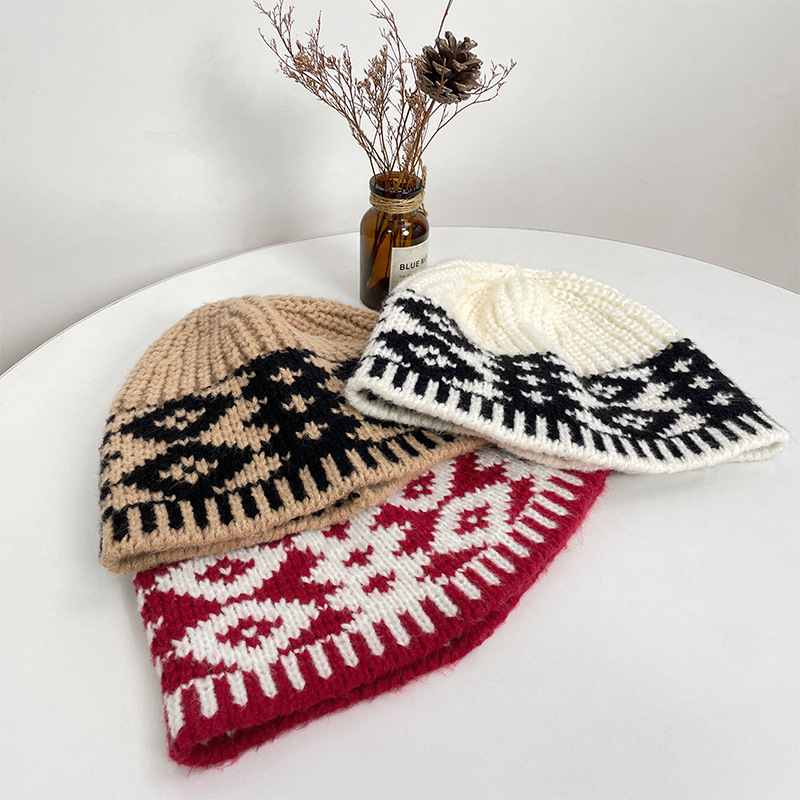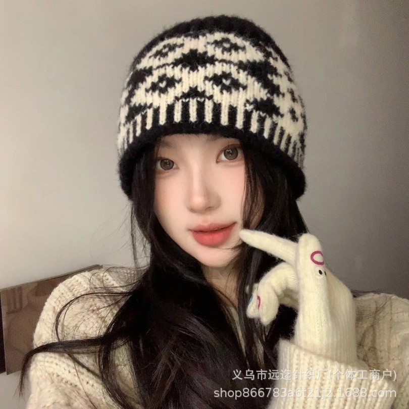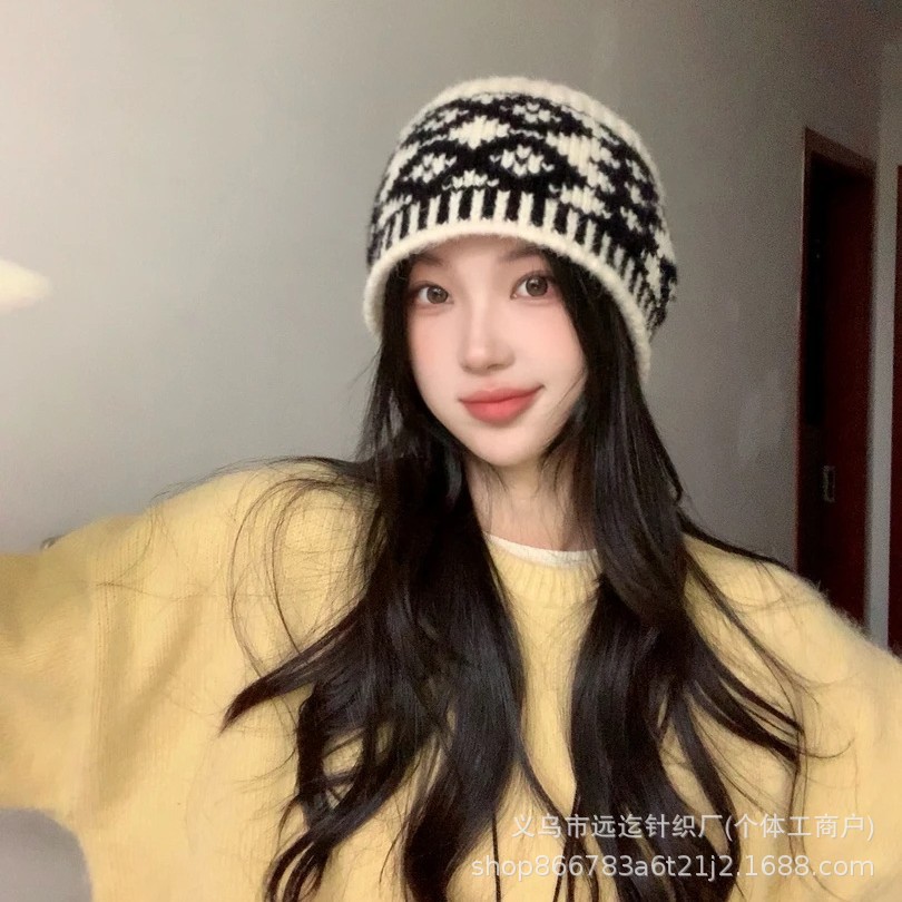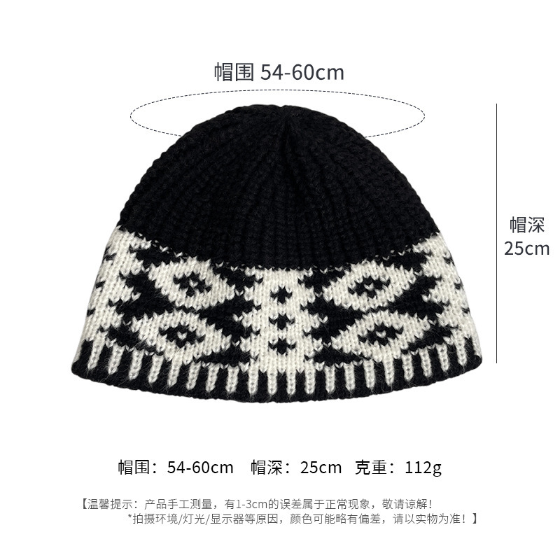 레트로 마름모 컬러 매칭 울 모자 가을과 겨울 틈새 디자인 따뜻한 모자 조커 니트 어부 모자 도매스토어 가기