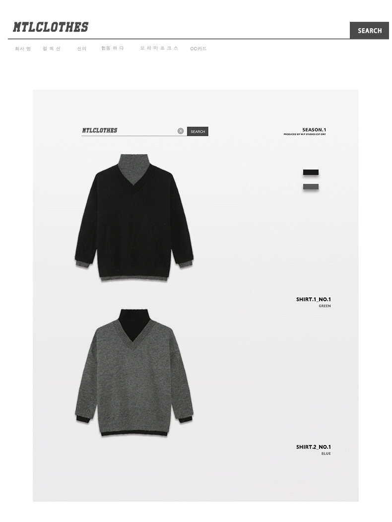 MTLCLOTHES 남성복 | 겨울 새로운 바느질 가짜 투피스 콘트라스트 컬러 하이 넥 니치 게으른 V 넥 니트 스웨터스토어 가기