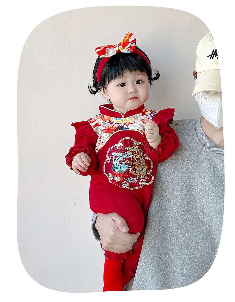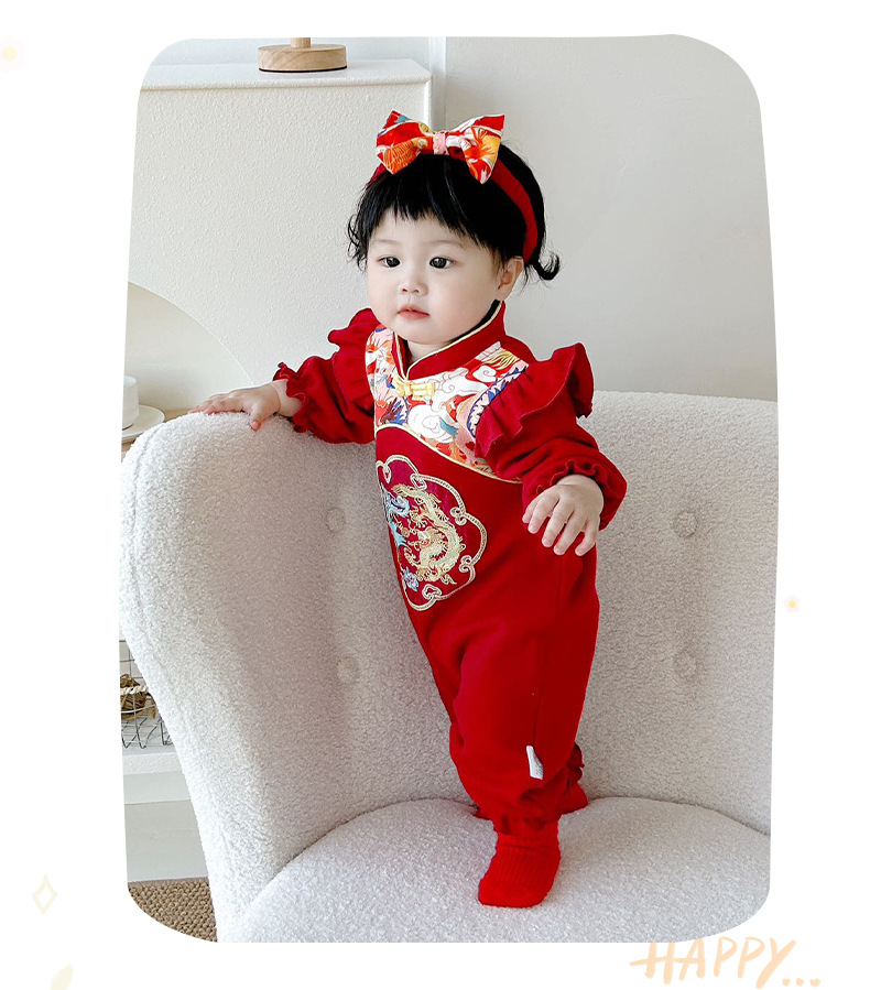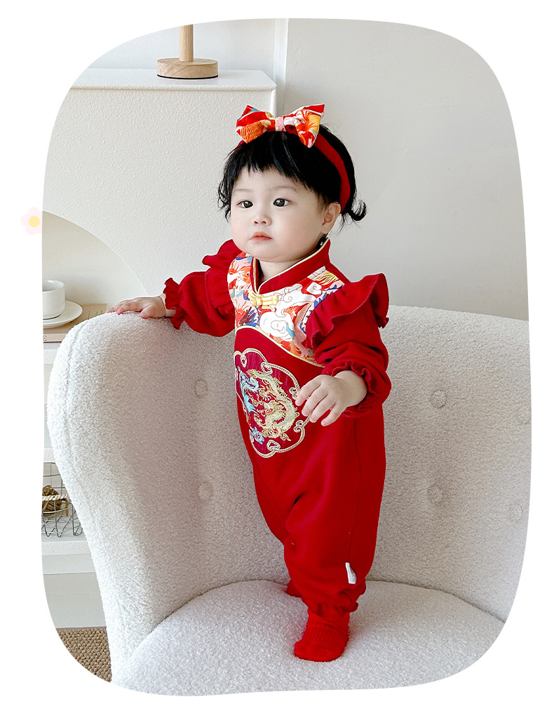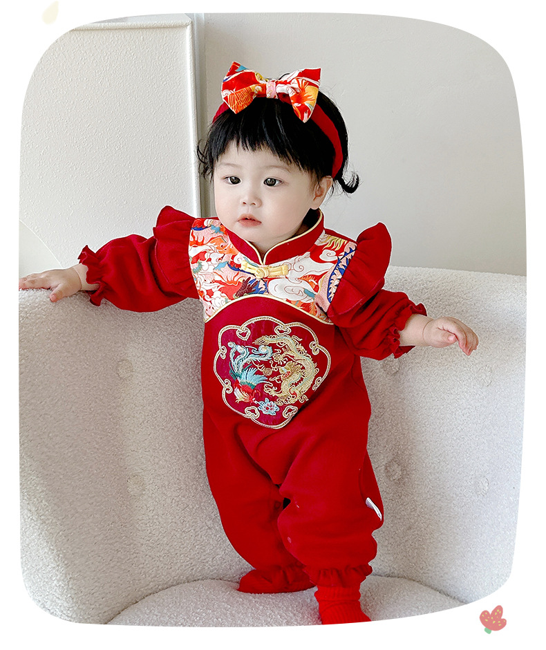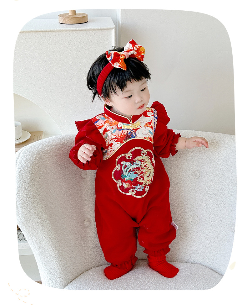 2025년 봄 아기 점프수트 중국풍 한살 축하 의상 3922 여자 아기 봄 가을 당나라 의상 설날 축하복스토어 가기