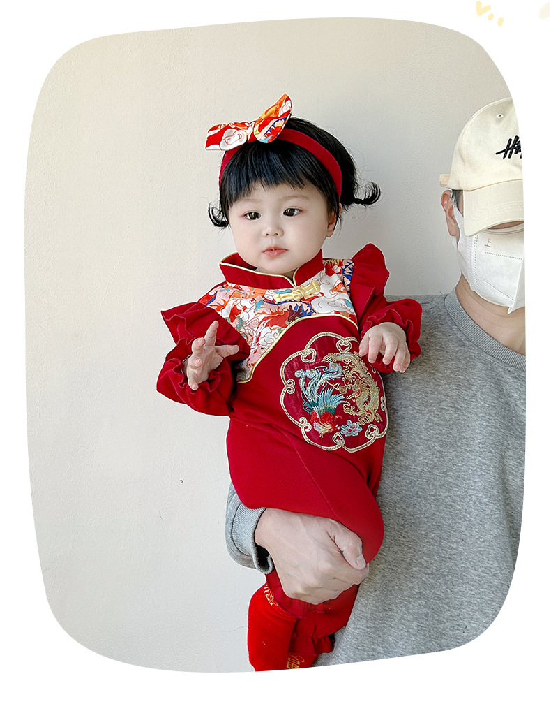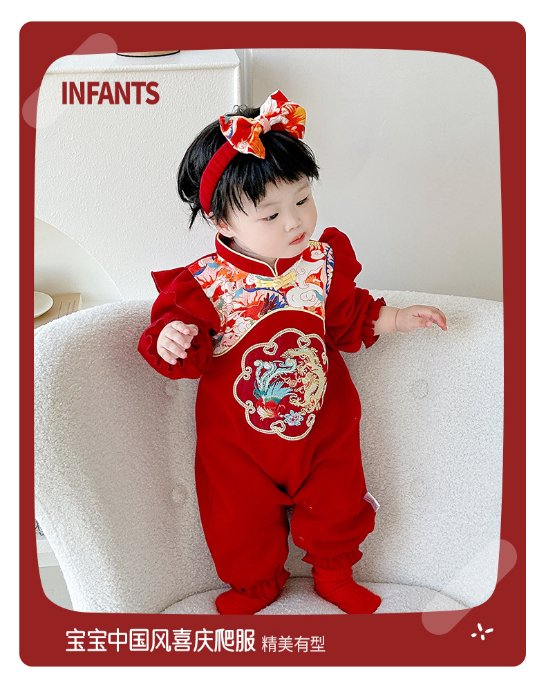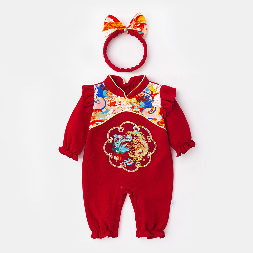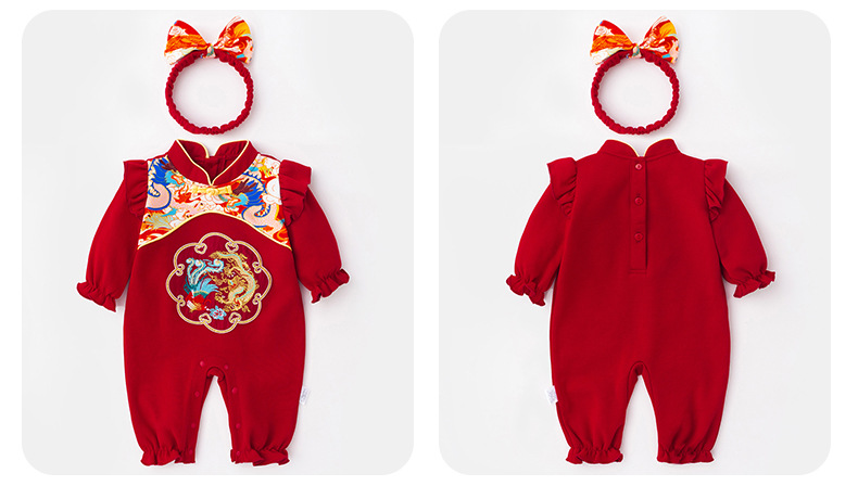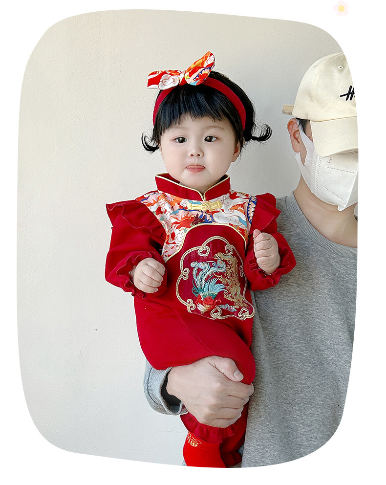 2025년 봄 아기 점프수트 중국풍 한살 축하 의상 3922 여자 아기 봄 가을 당나라 의상 설날 축하복스토어 가기