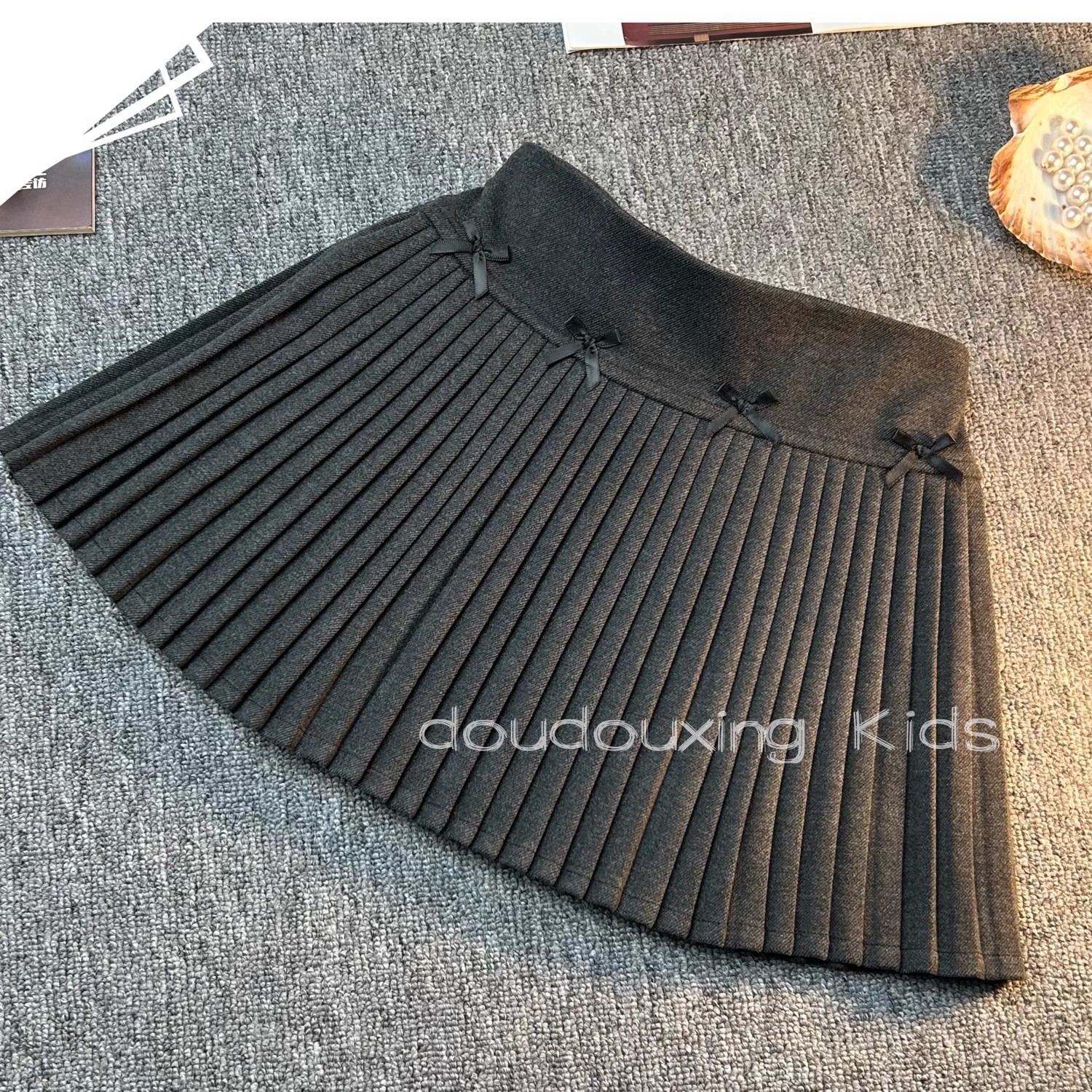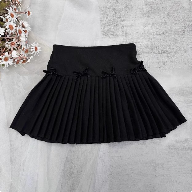 여아용 달콤한 리본 짧은 치마 2025 봄 가을 겨울 한국 스타일 어린이 패션 주름 치마 중대형 어린이용스토어 가기