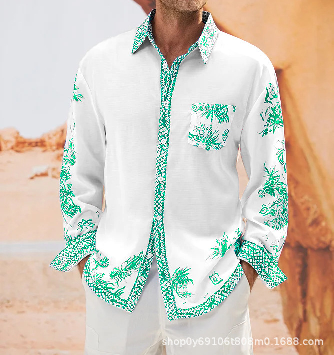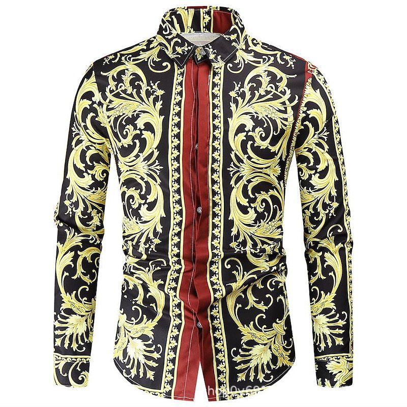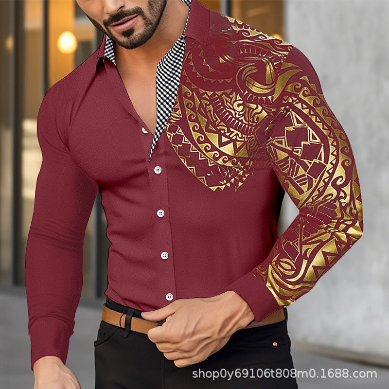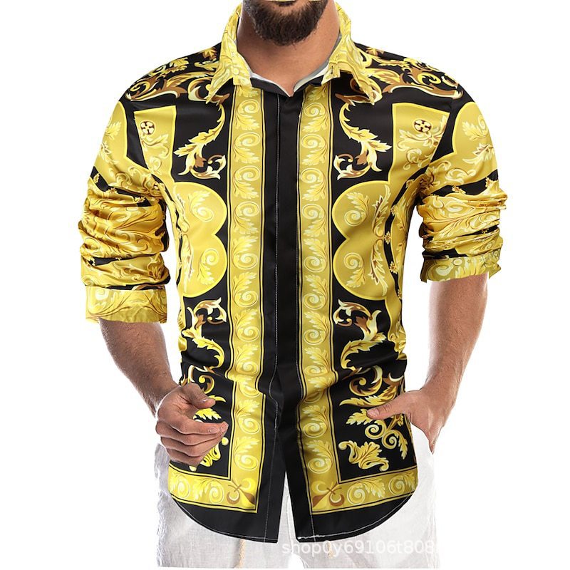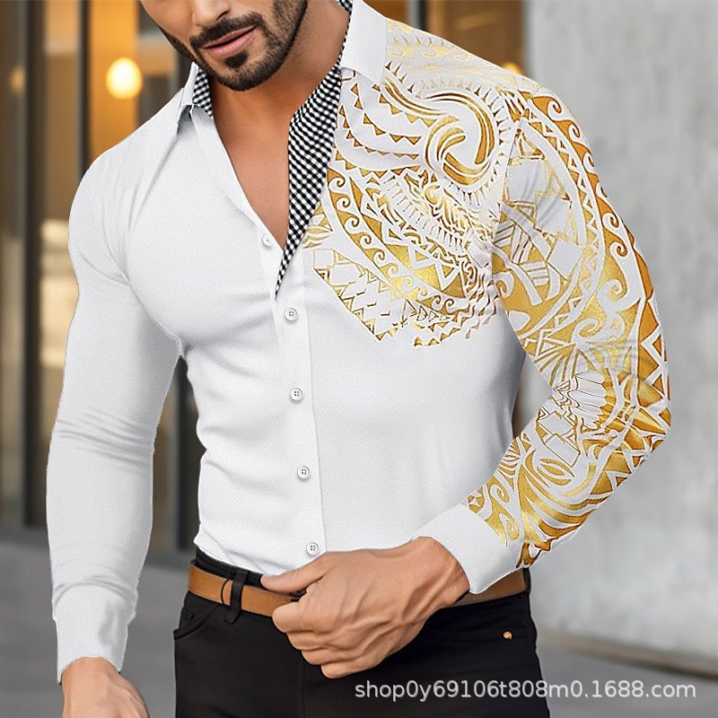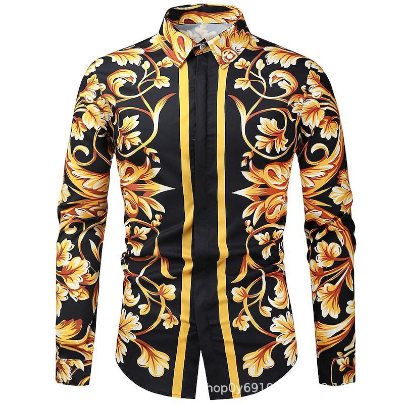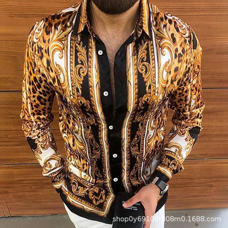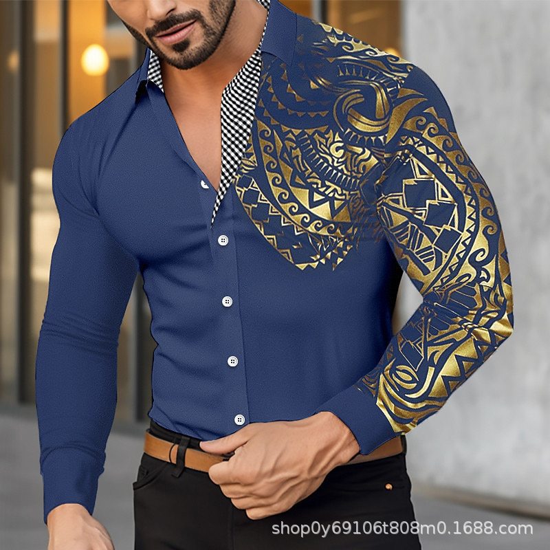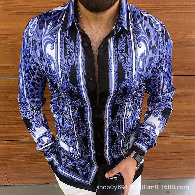대외 무역 새로운 유럽과 미국 남자의 긴 소매 셔츠 남자의 패션 유럽 크기 옷깃 청동 인쇄 셔츠 아마존스토어 가기