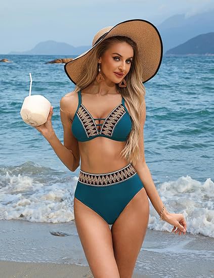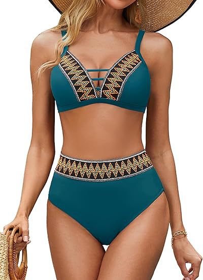 2025 여성용 하이 웨이스트 비키니 스플릿 슈트 V 넥 테더 비키니 아마존 핫 대외 무역을 모았습니다.스토어 가기
