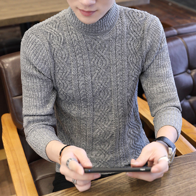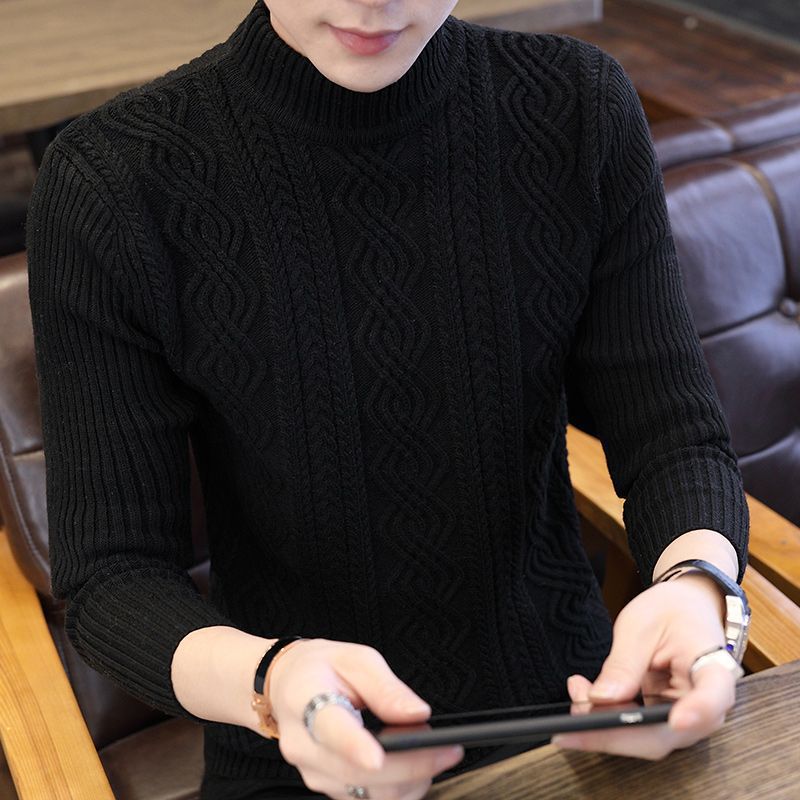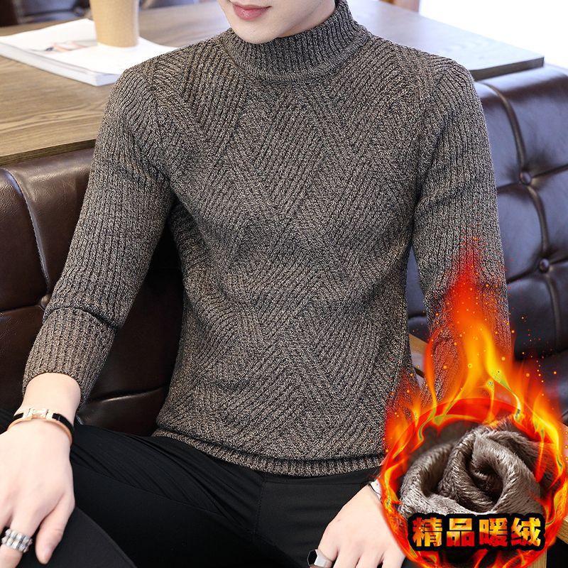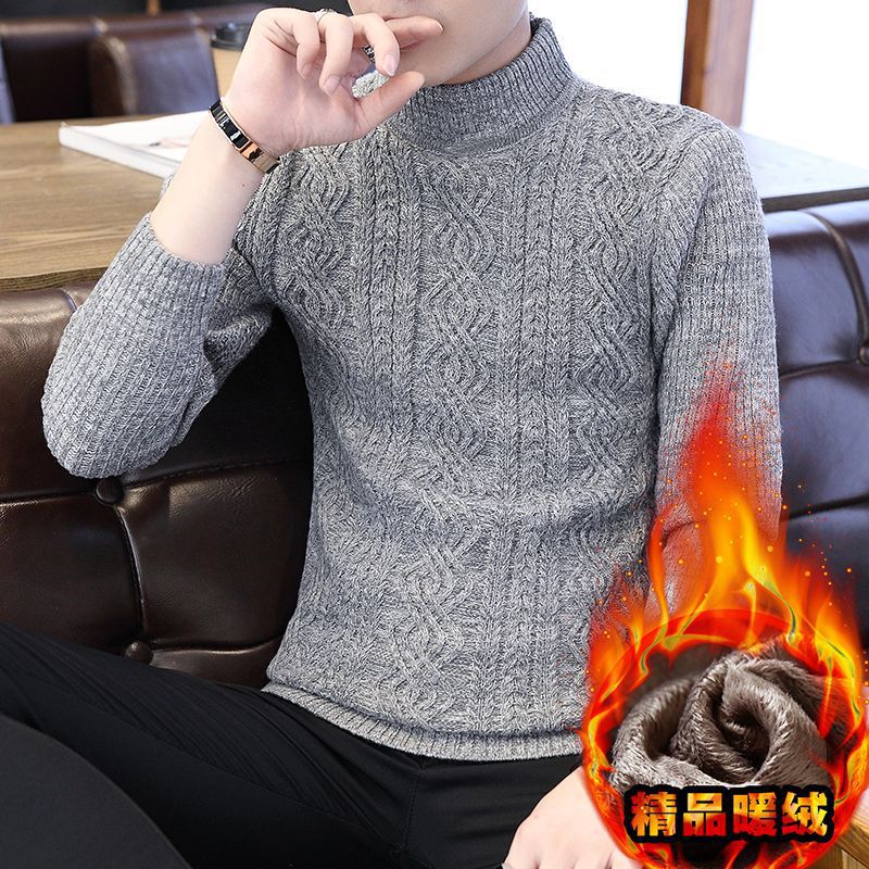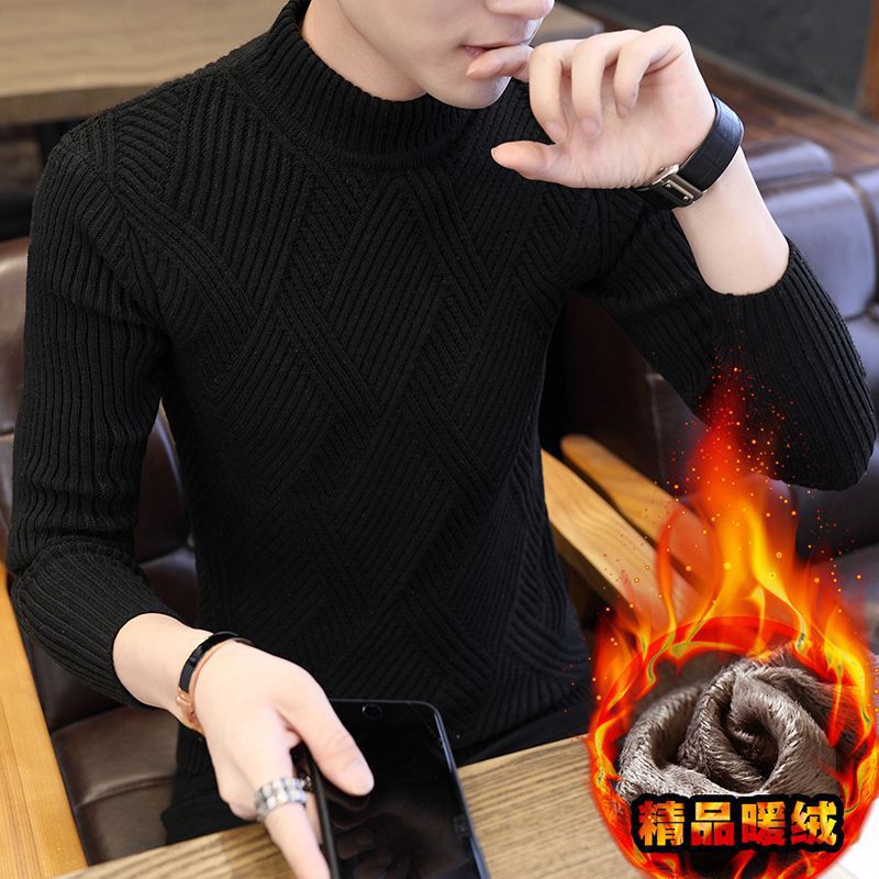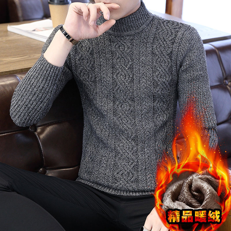 [바우처 감소] 기모 두꺼운 스웨터 남자 가을 · 겨울 절반 높은 칼라 한국 니트 스웨터 학생 스웨터 타이드스토어 가기