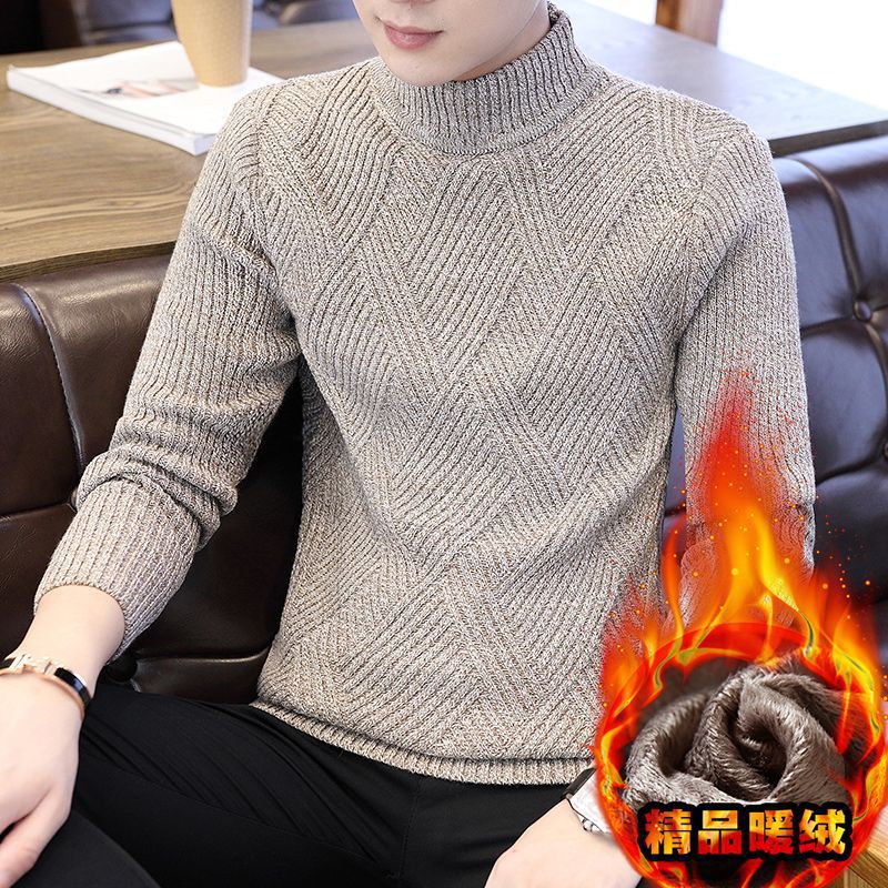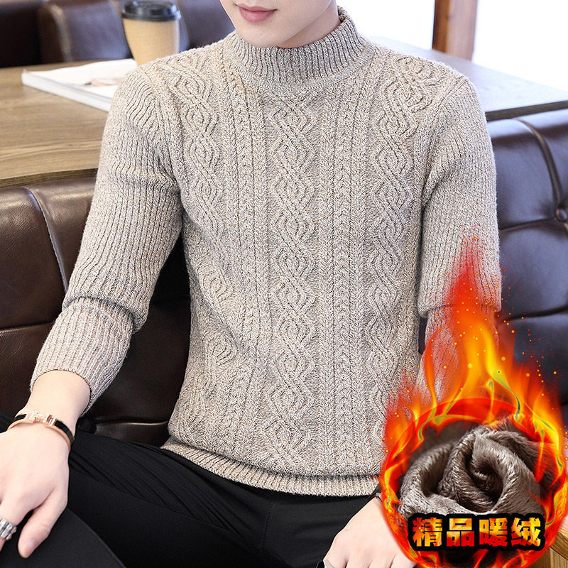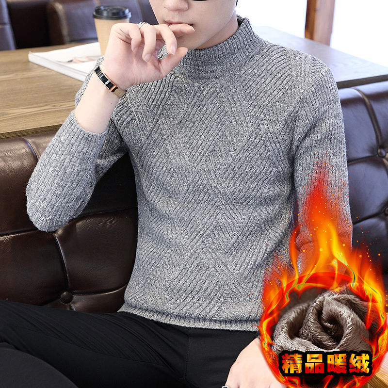 [바우처 감소] 기모 두꺼운 스웨터 남자 가을 · 겨울 절반 높은 칼라 한국 니트 스웨터 학생 스웨터 타이드