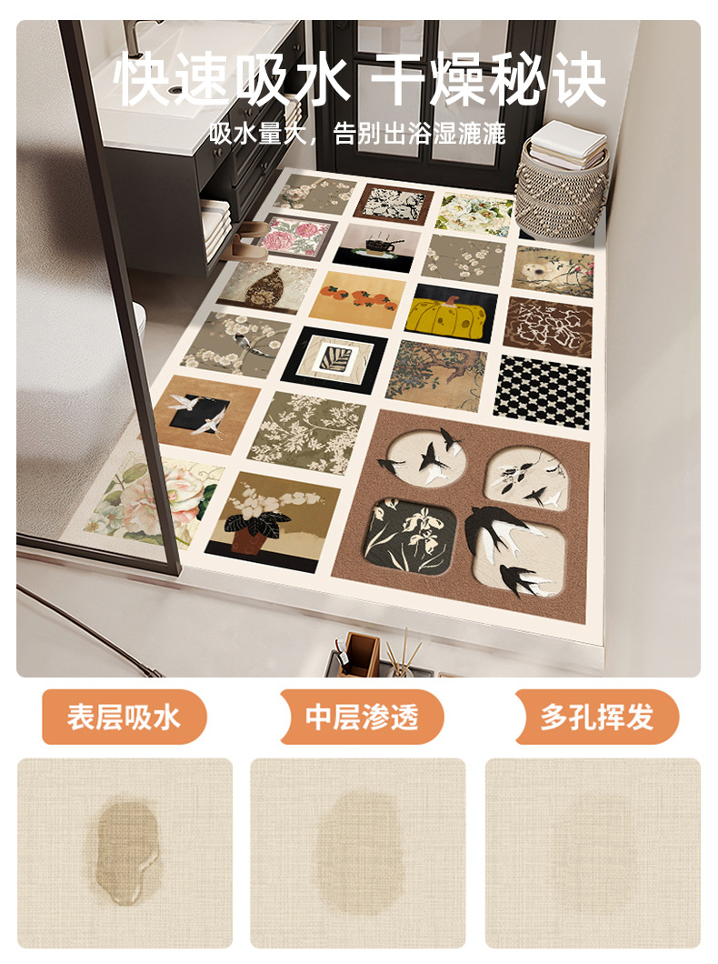 화장실 물 흡수성 바닥 매트 고급 감각 대형 중형 골동품 세면대 대형 퍼짐 미끄럼 방지 매트 멀티 소재