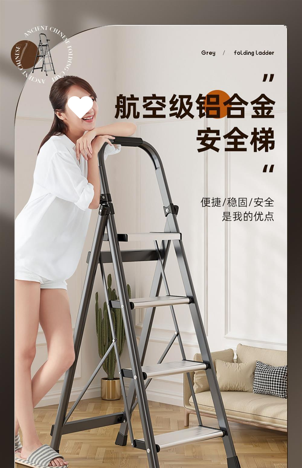 항공 알루미늄 합금 가정용 접이식 사다리 야외 등반 사다리 실내 다기능 두꺼운 헤링본 사다리 계단 등반 사다리스토어 가기