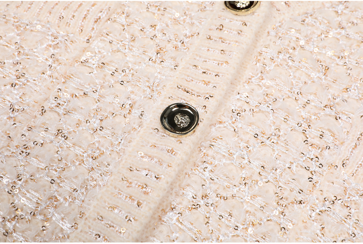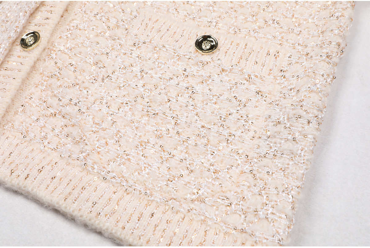24219 고급 기성품 봄 가을 신상 유럽 및 미국 스타일 고품질 스팽글 니트 긴팔 V넥 가디건 여성용 상의/코트