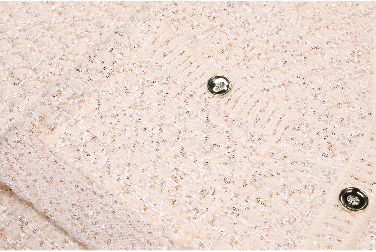 24219 고급 기성품 봄 가을 신상 유럽 및 미국 스타일 고품질 스팽글 니트 긴팔 V넥 가디건 여성용 상의/코트스토어 가기