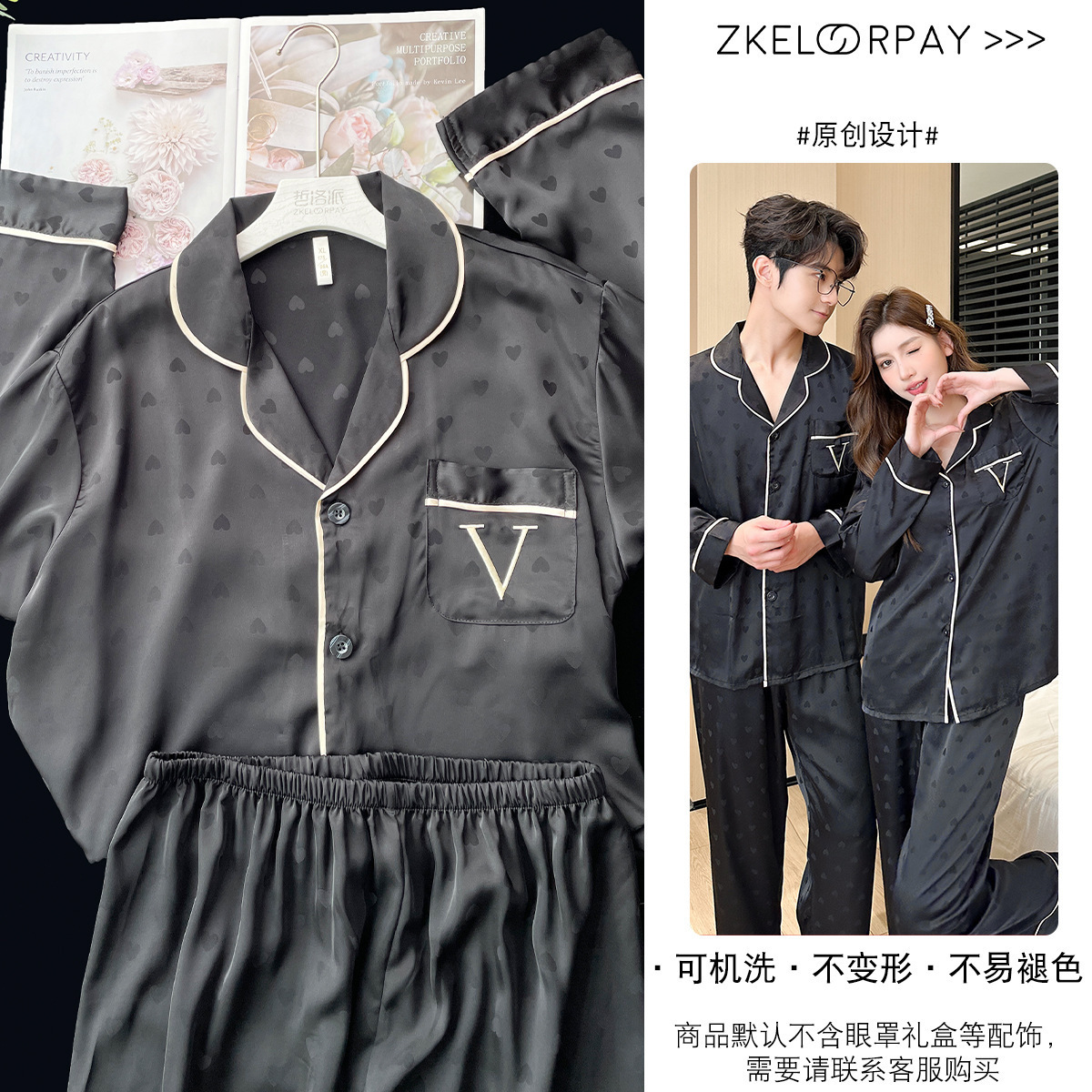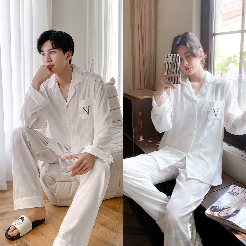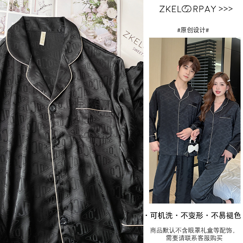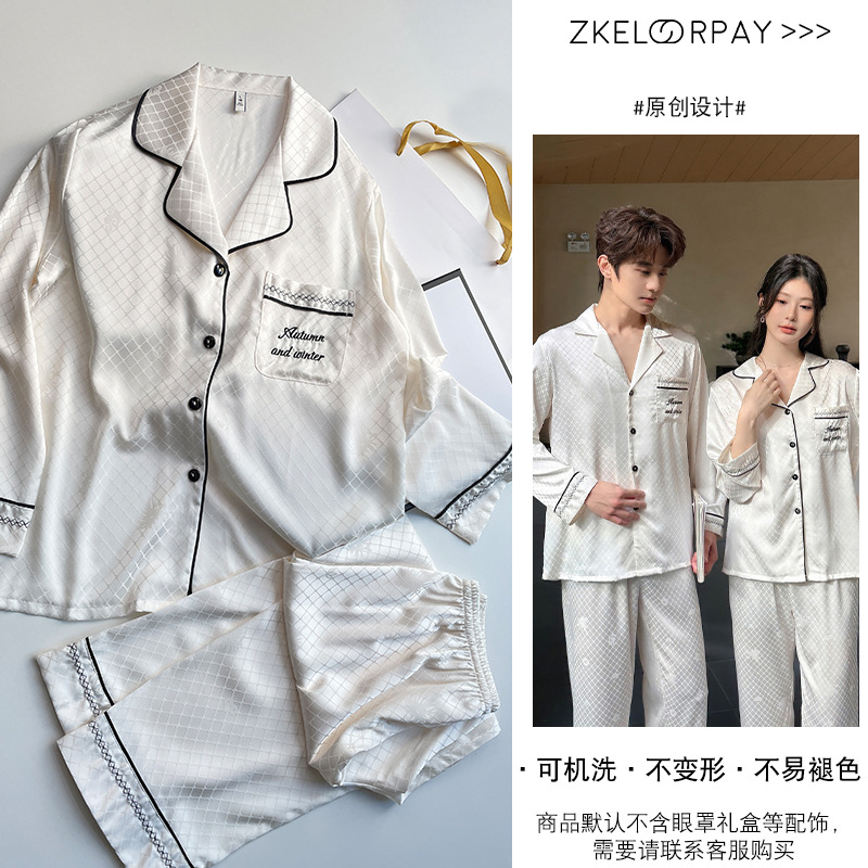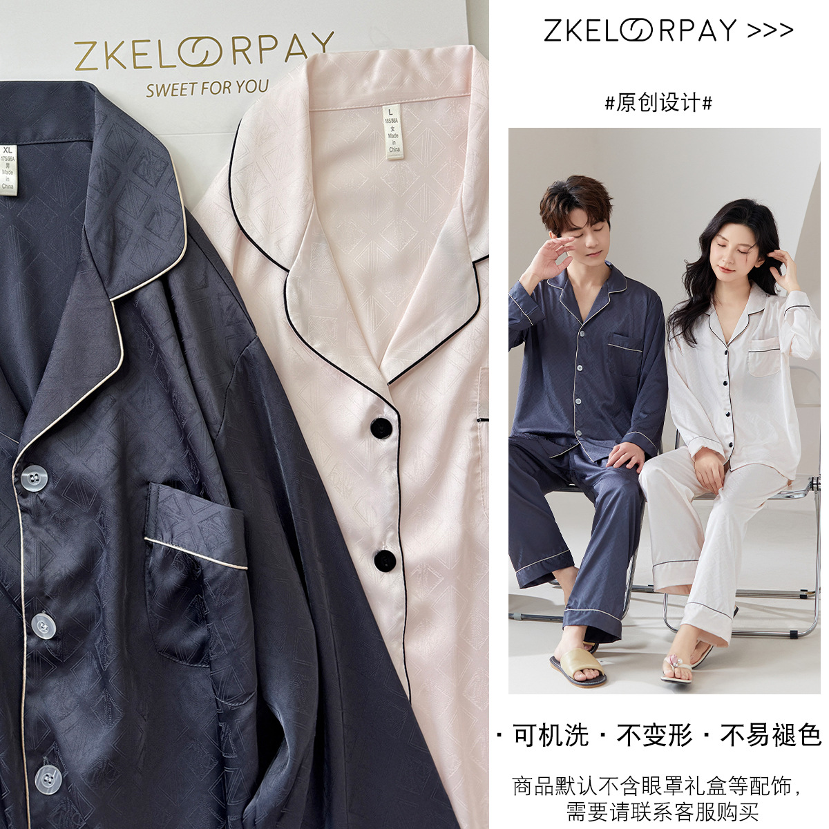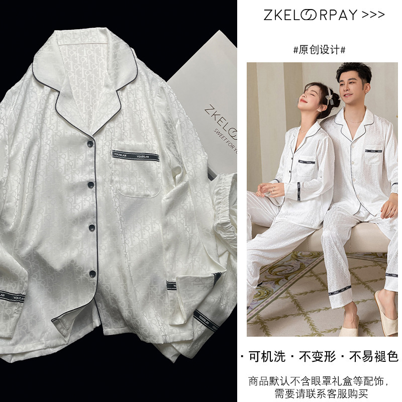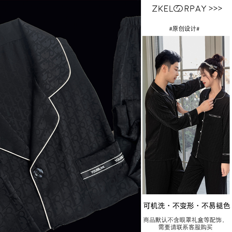 봄과 가을 새로운 높은 고정 입장 럭셔리 모조 실크 긴 소매 아이스 실크 커플 파자마 여성 하이 엔드 센스 홈 의류 남성 도매스토어 가기