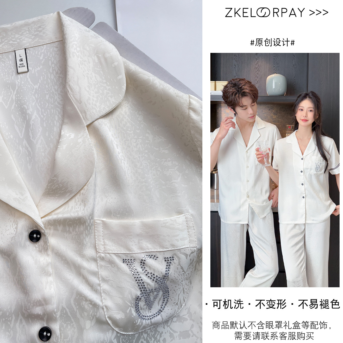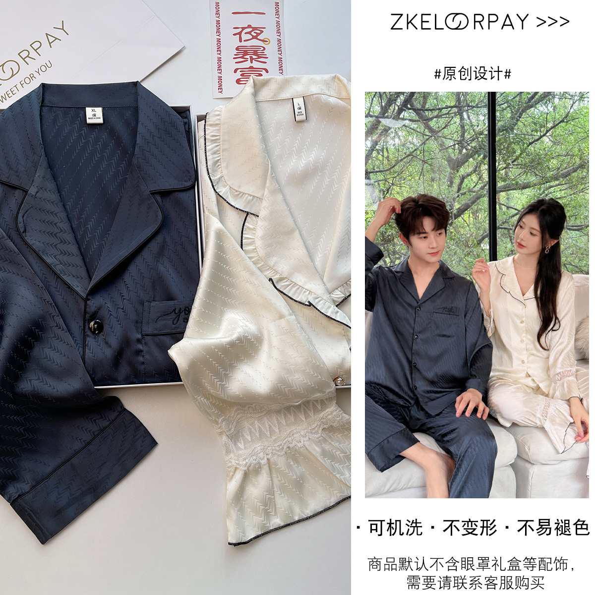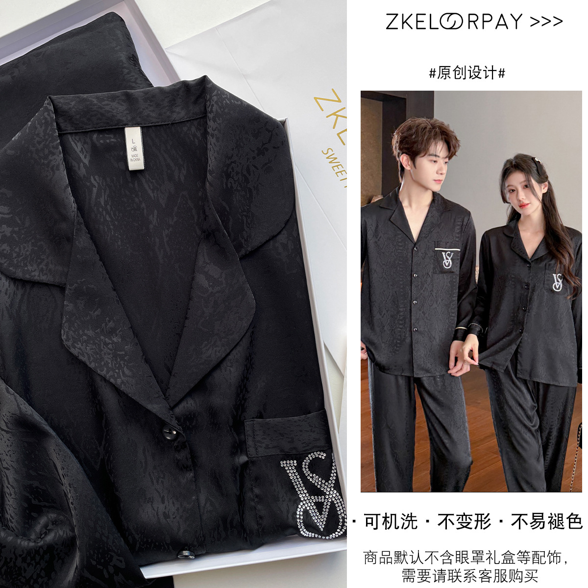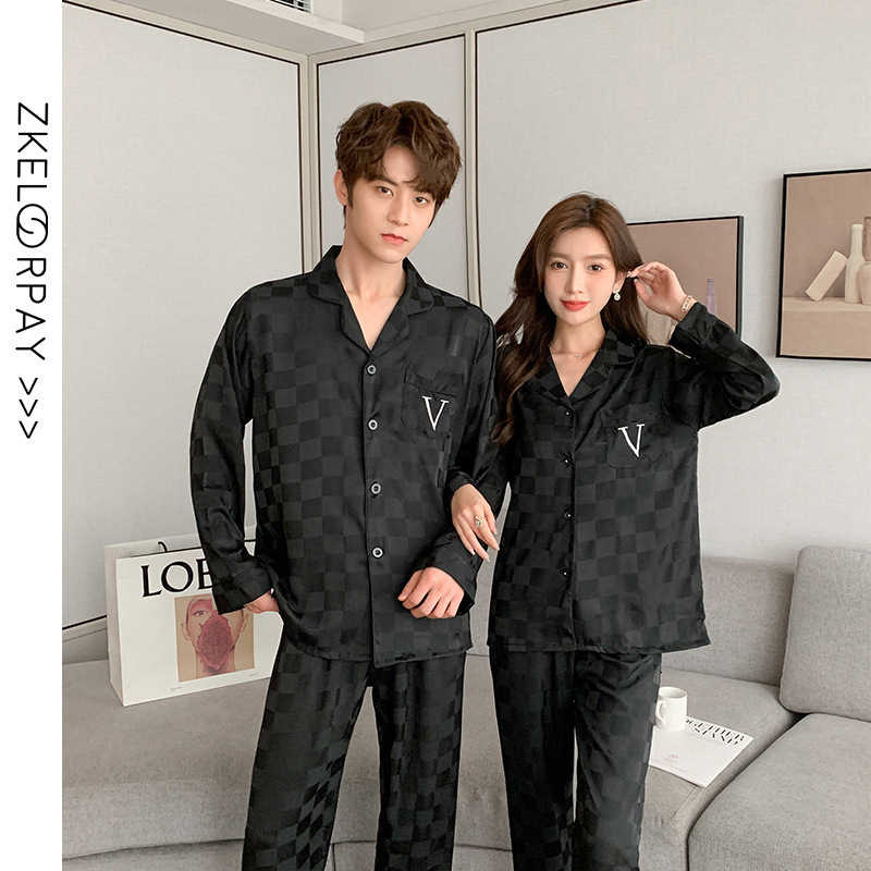 봄과 가을 새로운 높은 고정 입장 럭셔리 모조 실크 긴 소매 아이스 실크 커플 파자마 여성 하이 엔드 센스 홈 의류 남성 도매스토어 가기
