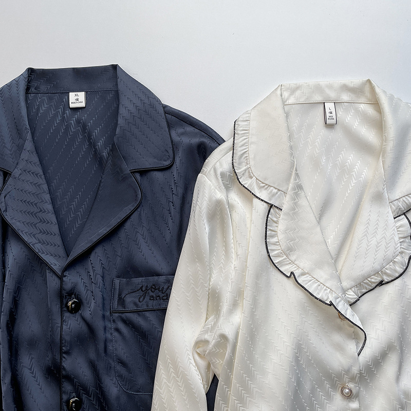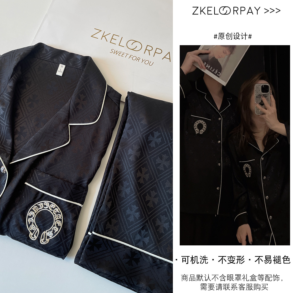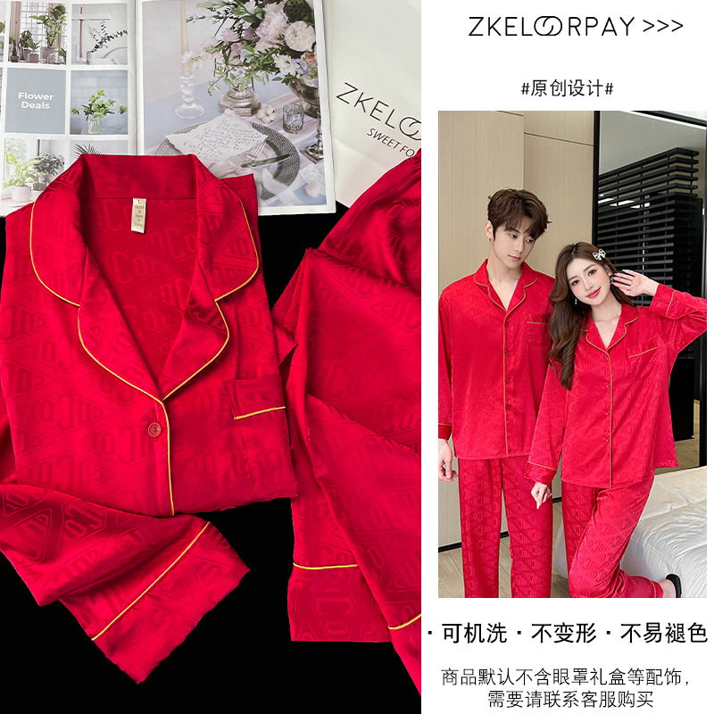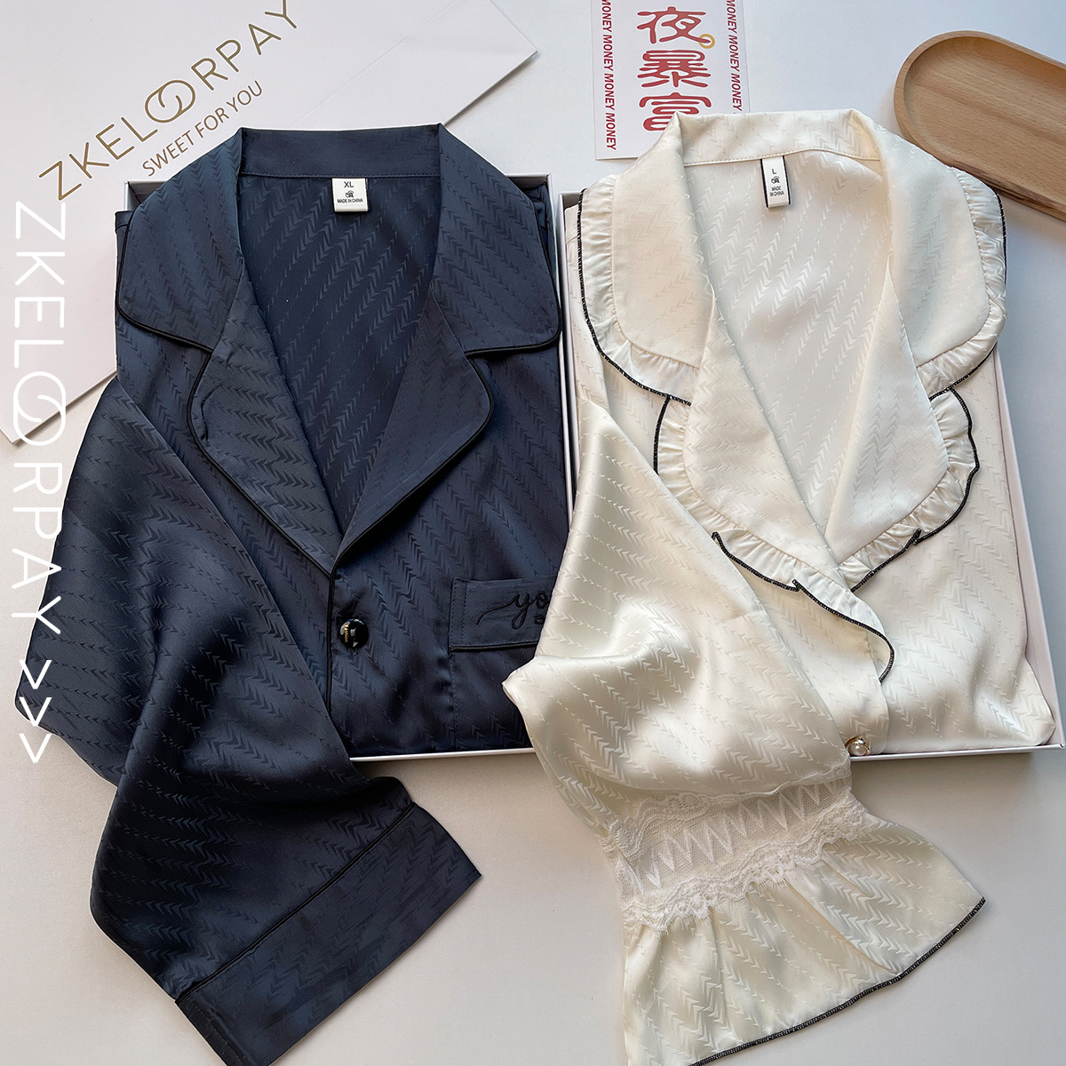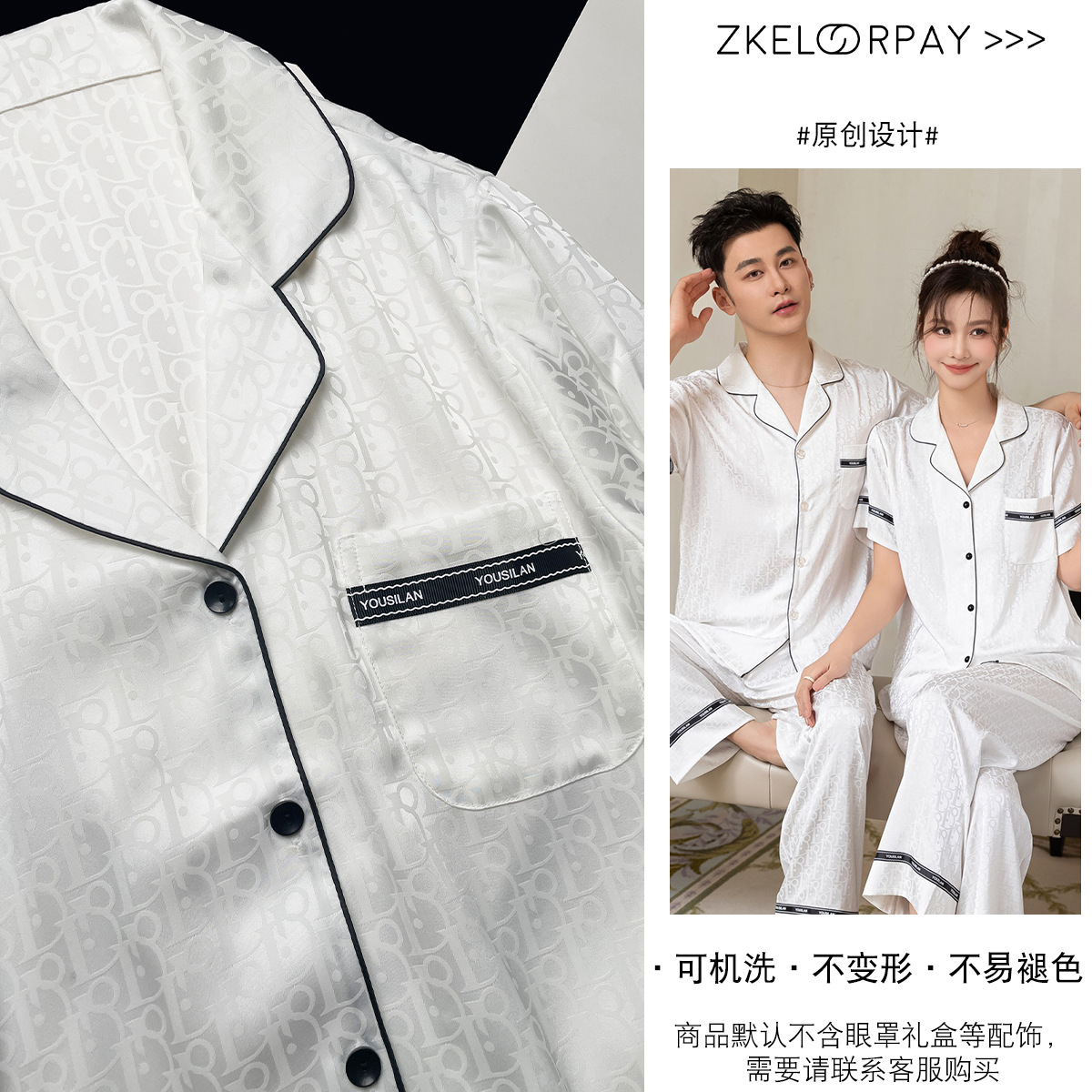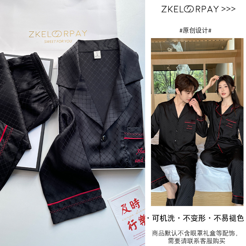 봄과 가을 새로운 높은 고정 입장 럭셔리 모조 실크 긴 소매 아이스 실크 커플 파자마 여성 하이 엔드 센스 홈 의류 남성 도매스토어 가기
