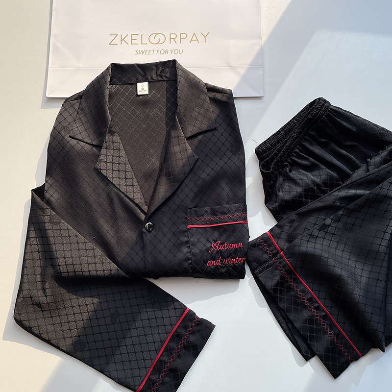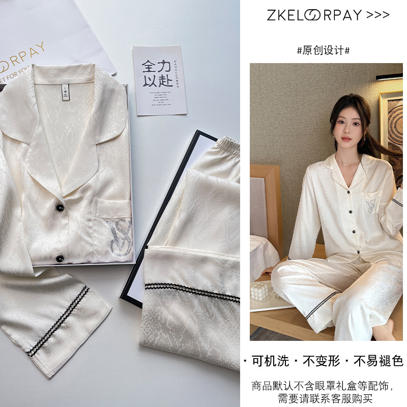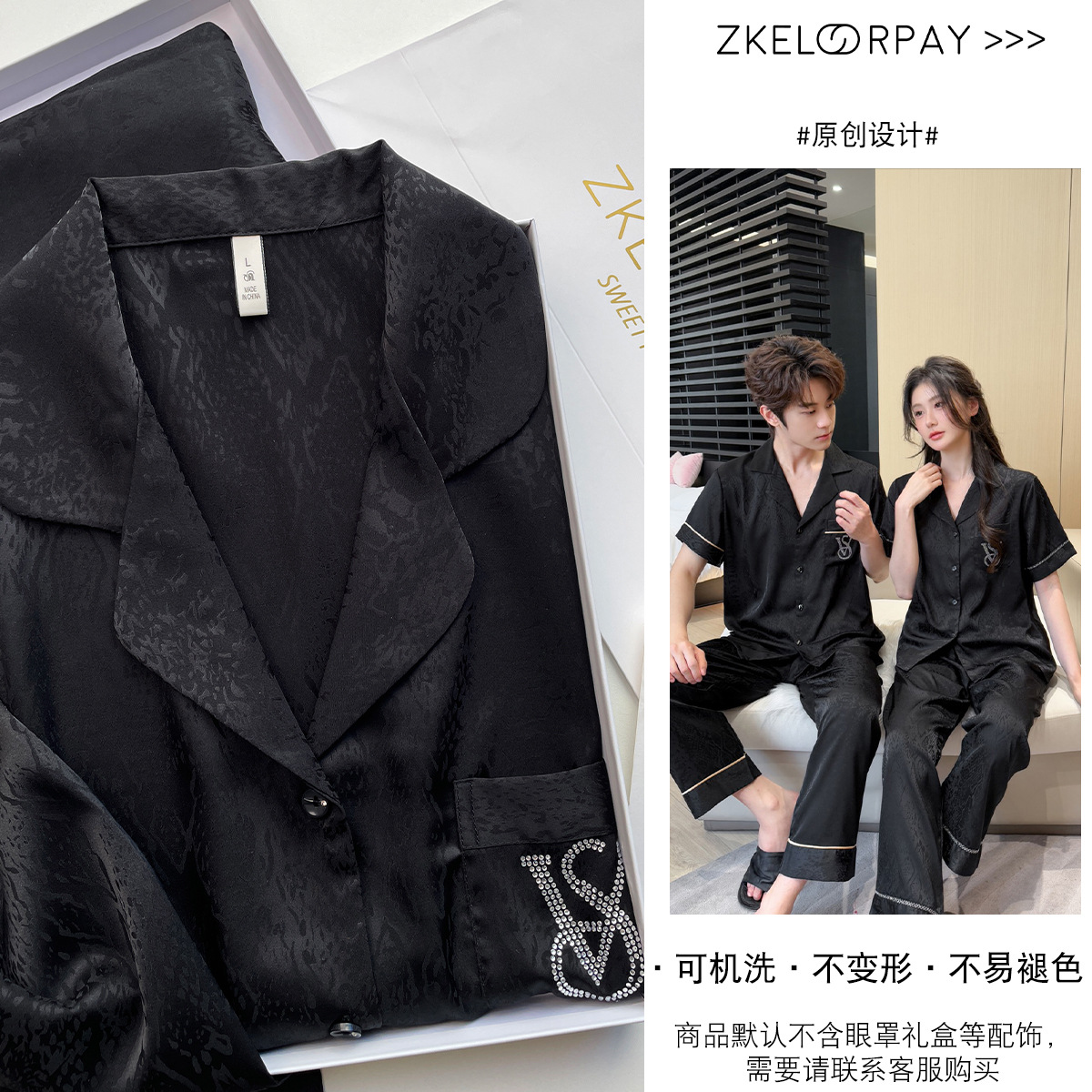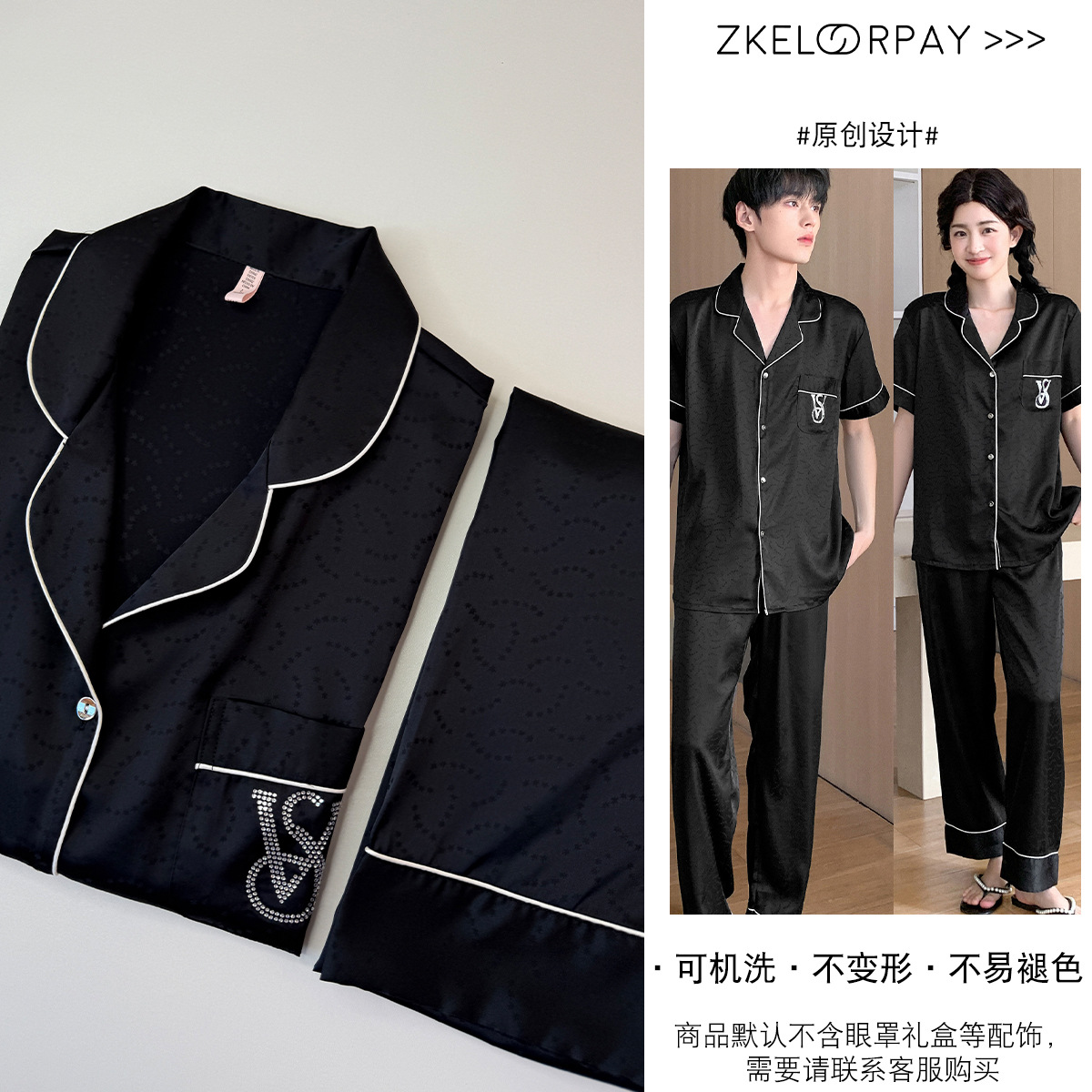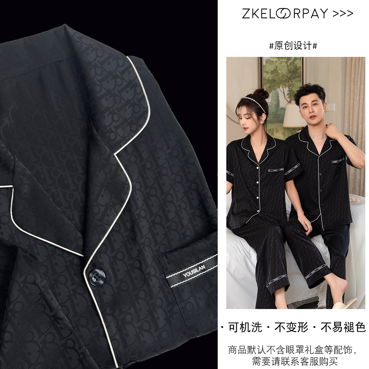 봄과 가을 새로운 높은 고정 입장 럭셔리 모조 실크 긴 소매 아이스 실크 커플 파자마 여성 하이 엔드 센스 홈 의류 남성 도매스토어 가기