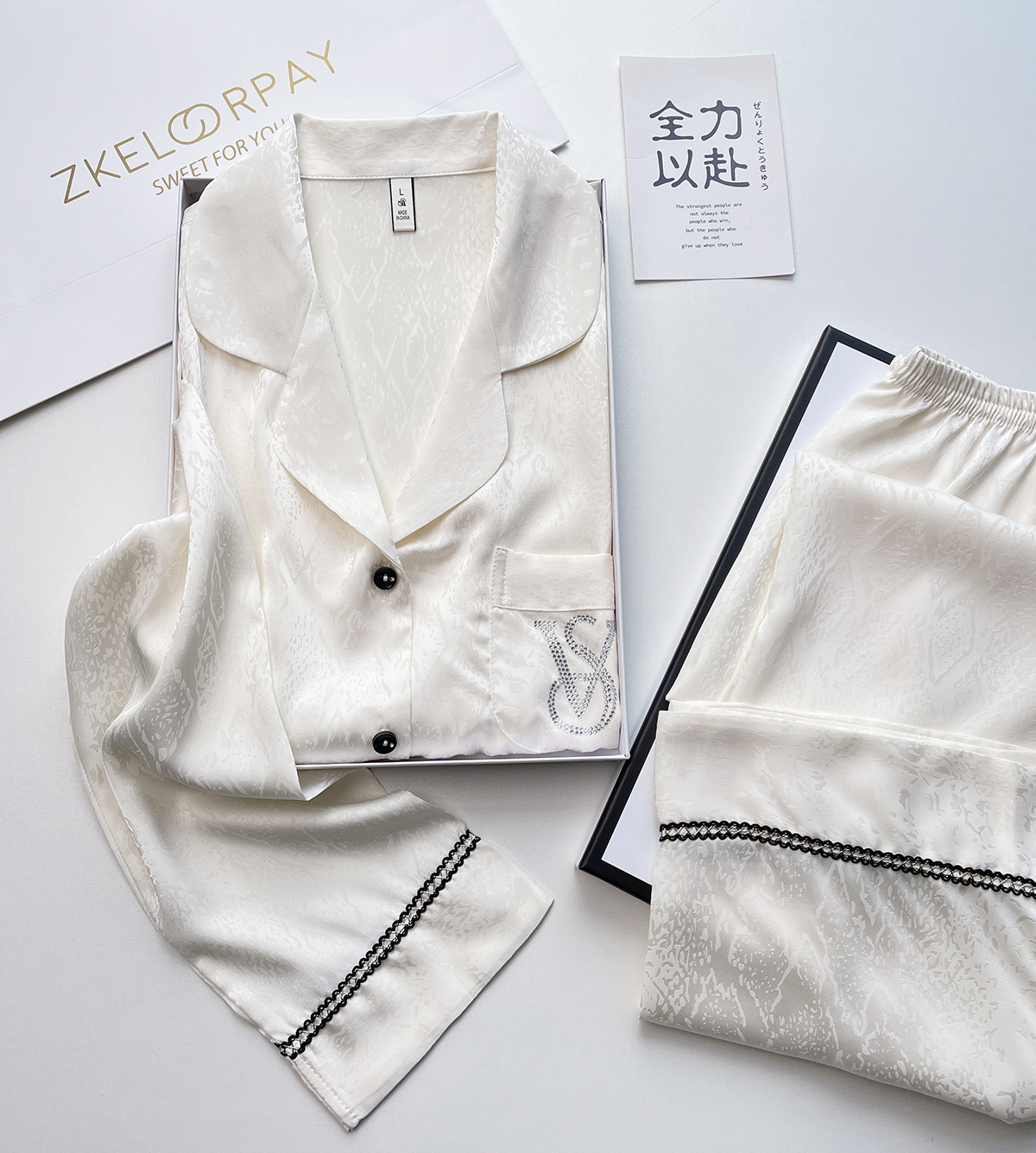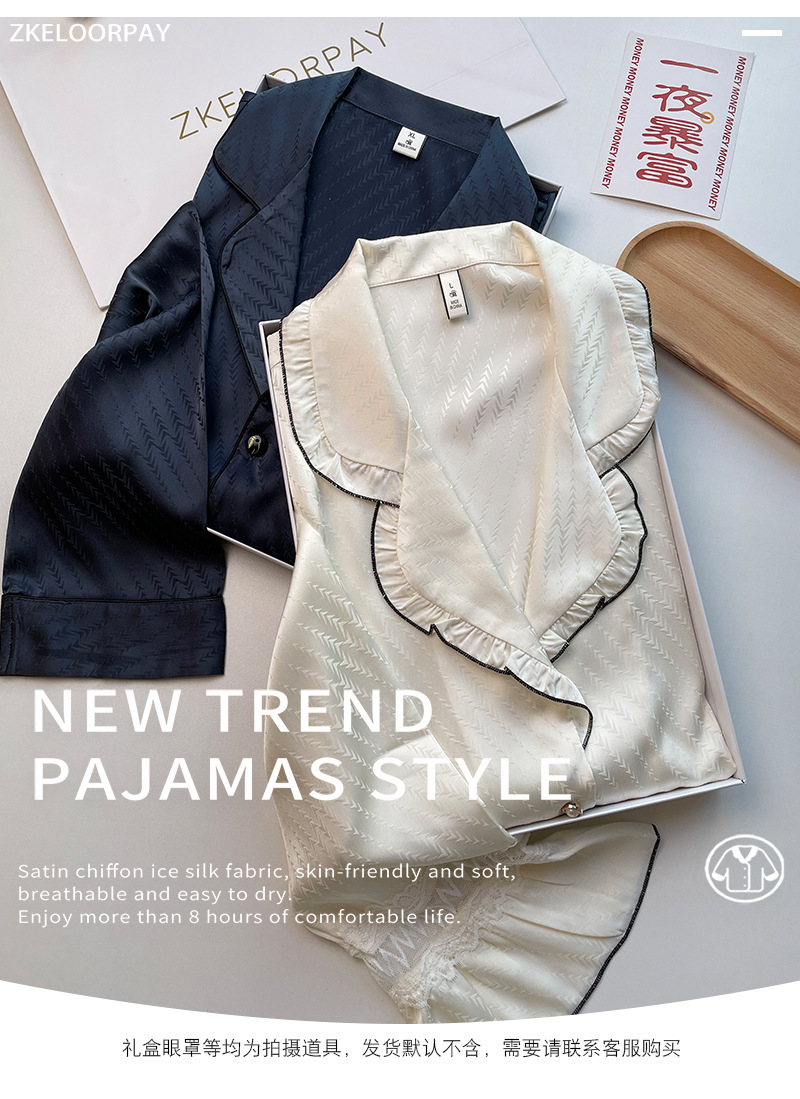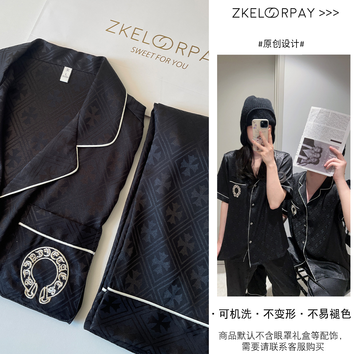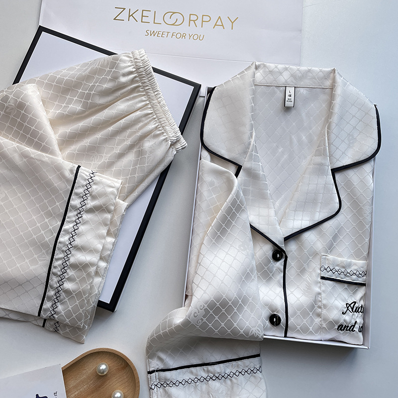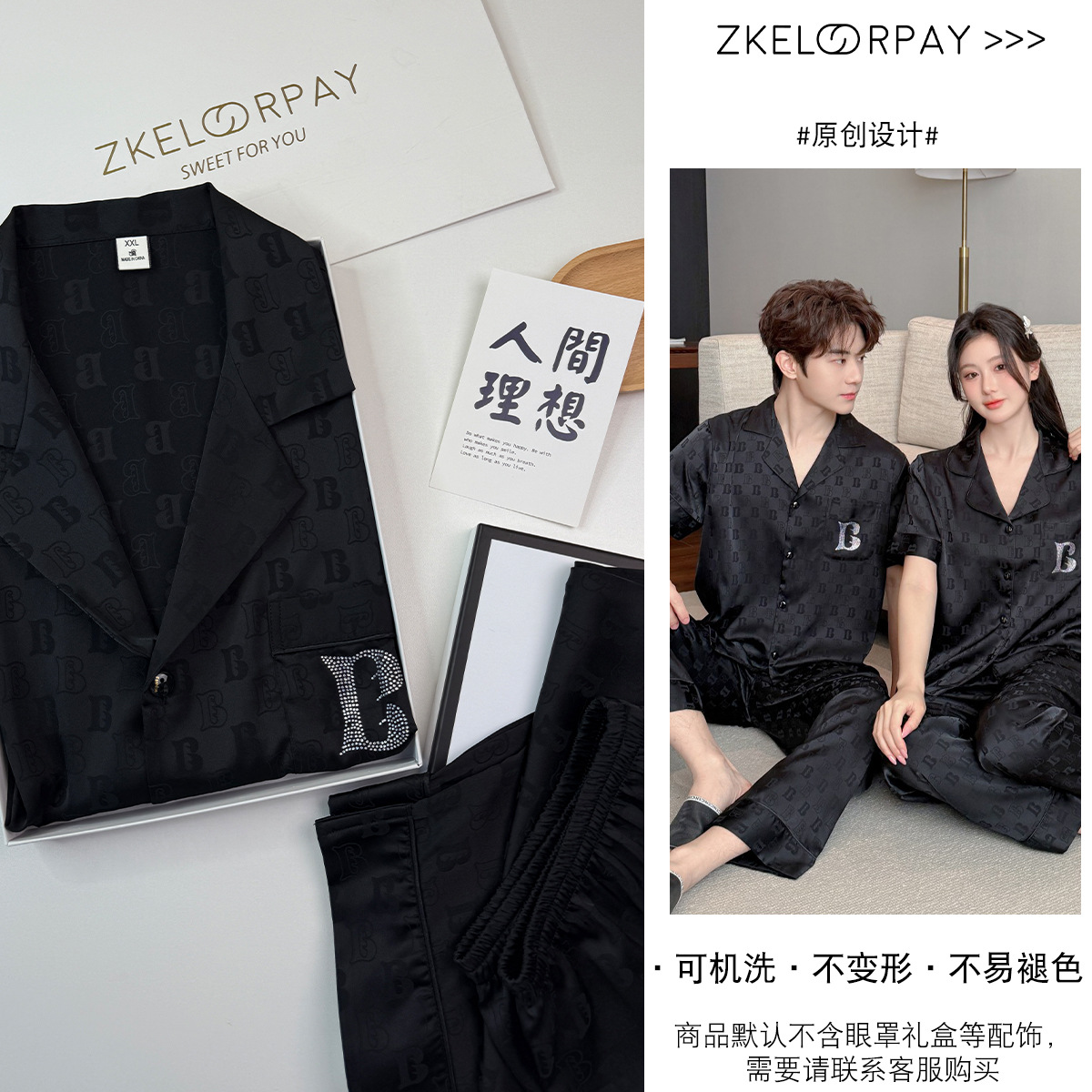 봄과 가을 새로운 높은 고정 입장 럭셔리 모조 실크 긴 소매 아이스 실크 커플 파자마 여성 하이 엔드 센스 홈 의류 남성 도매스토어 가기