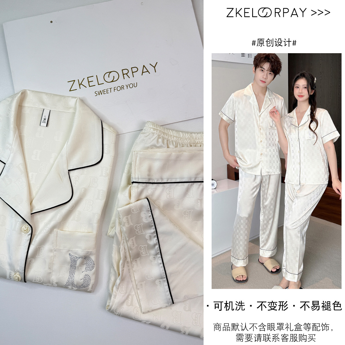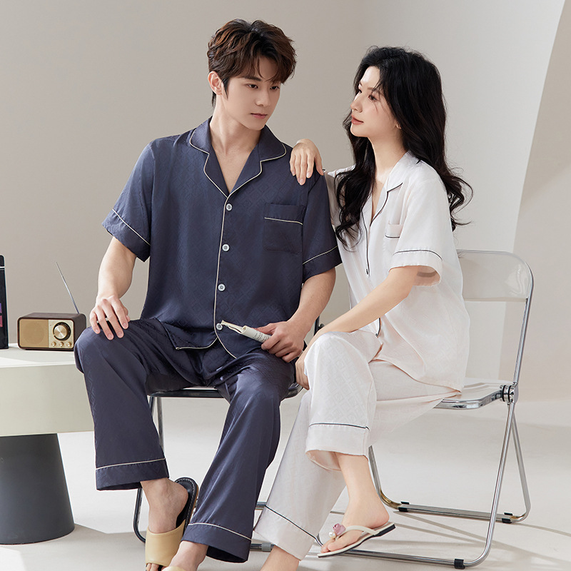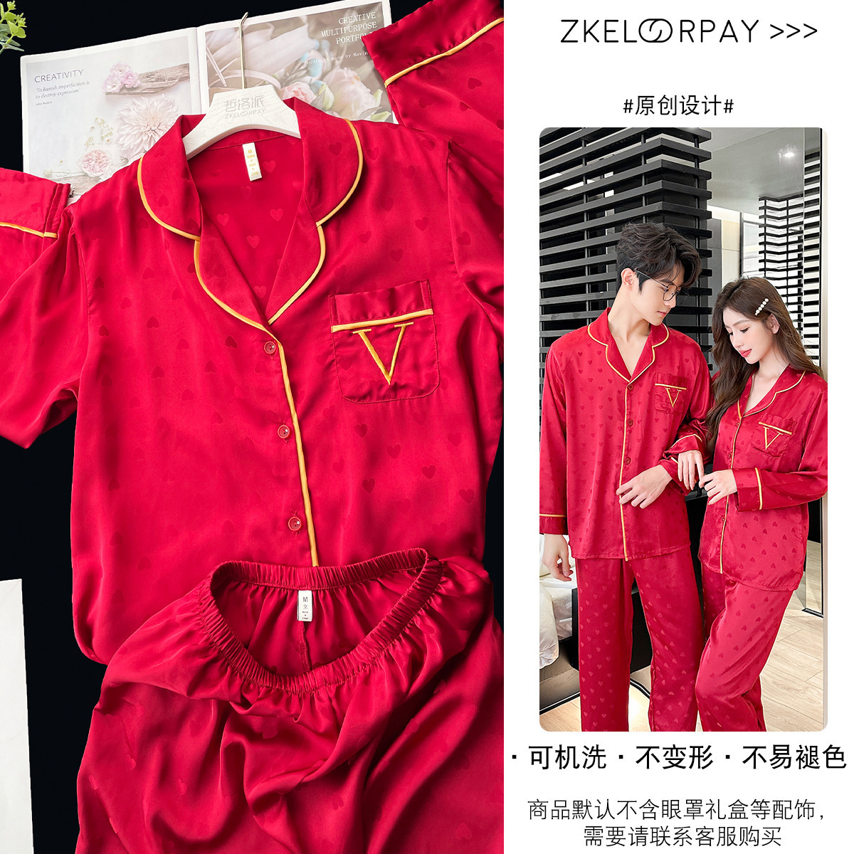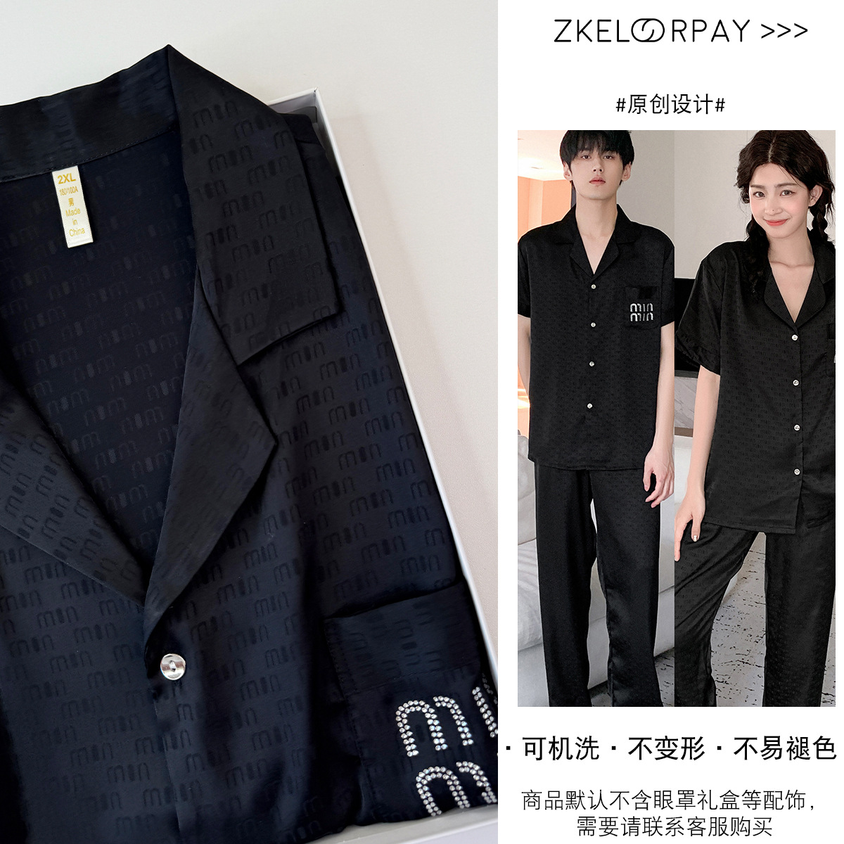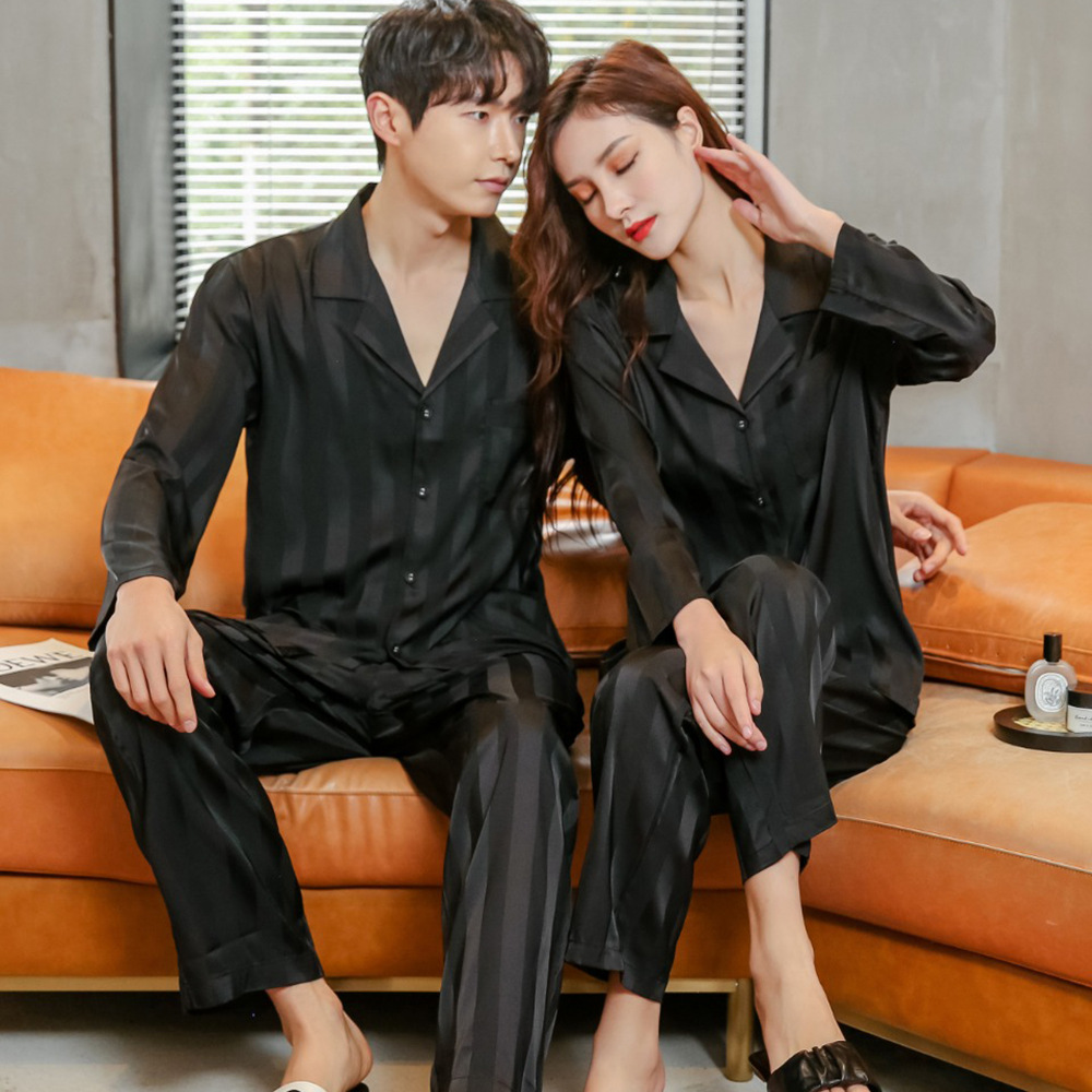 봄과 가을 새로운 높은 고정 입장 럭셔리 모조 실크 긴 소매 아이스 실크 커플 파자마 여성 하이 엔드 센스 홈 의류 남성 도매