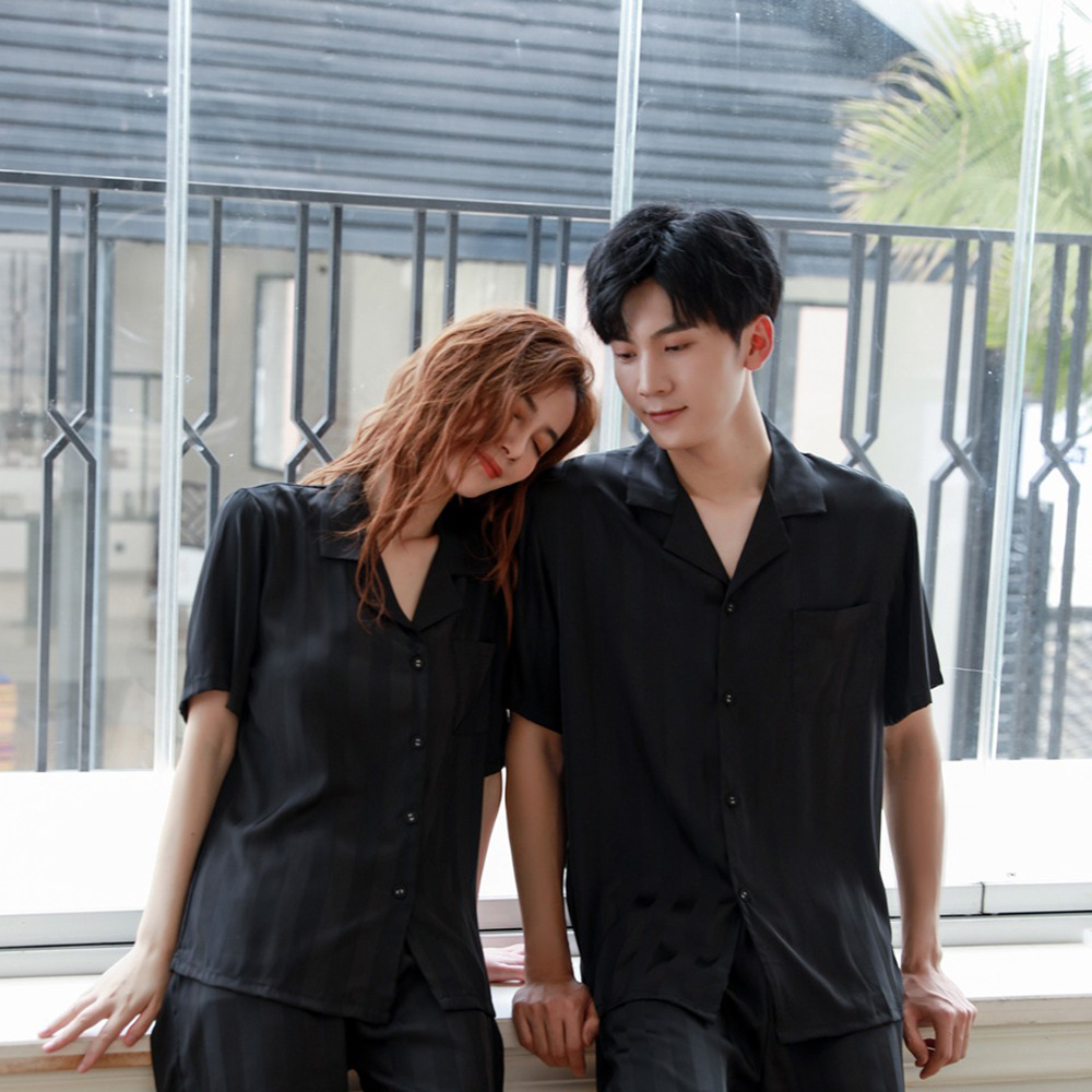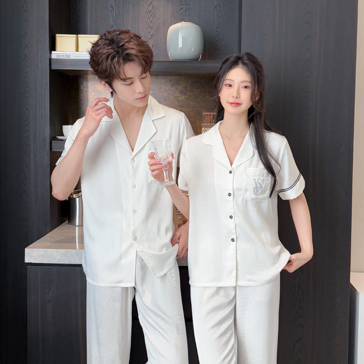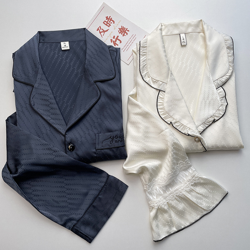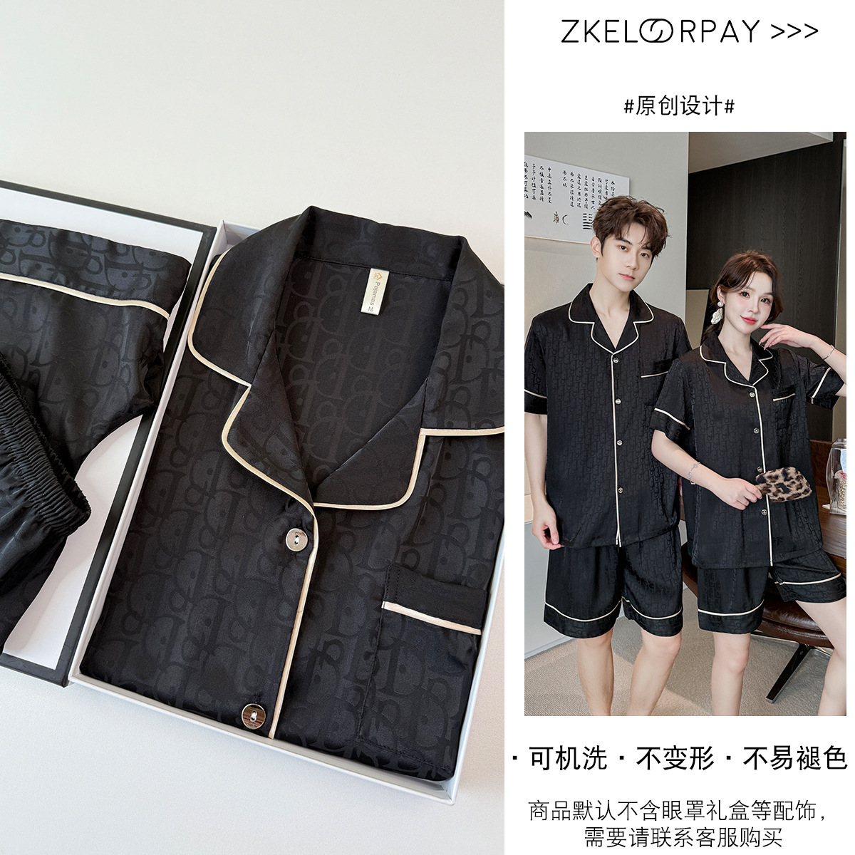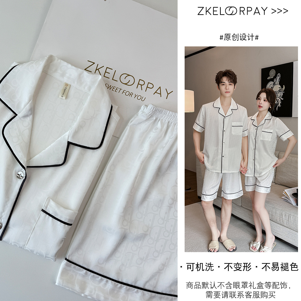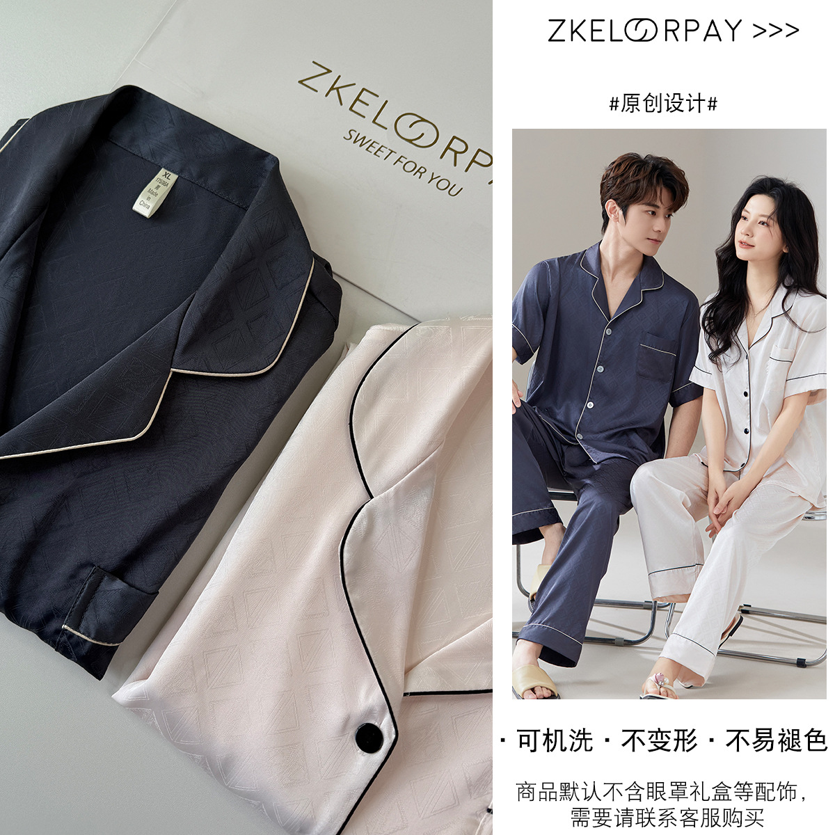 봄과 가을 새로운 높은 고정 입장 럭셔리 모조 실크 긴 소매 아이스 실크 커플 파자마 여성 하이 엔드 센스 홈 의류 남성 도매