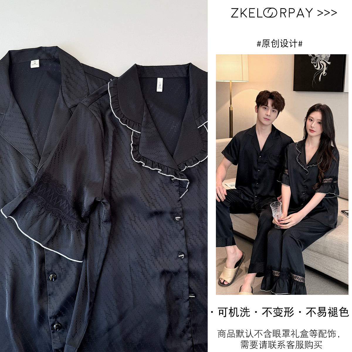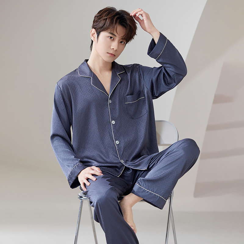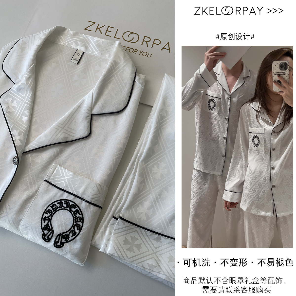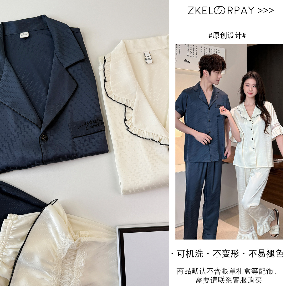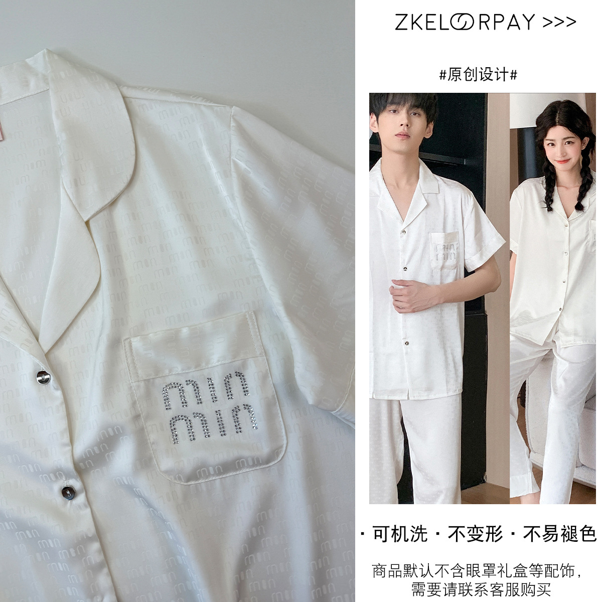 봄과 가을 새로운 높은 고정 입장 럭셔리 모조 실크 긴 소매 아이스 실크 커플 파자마 여성 하이 엔드 센스 홈 의류 남성 도매