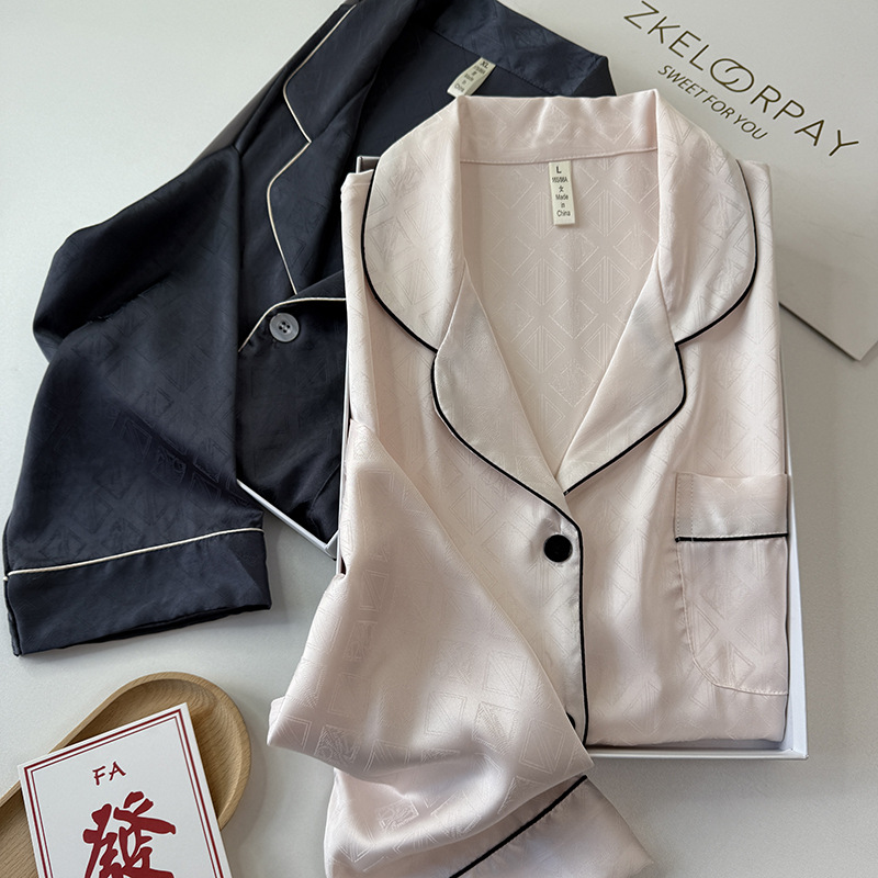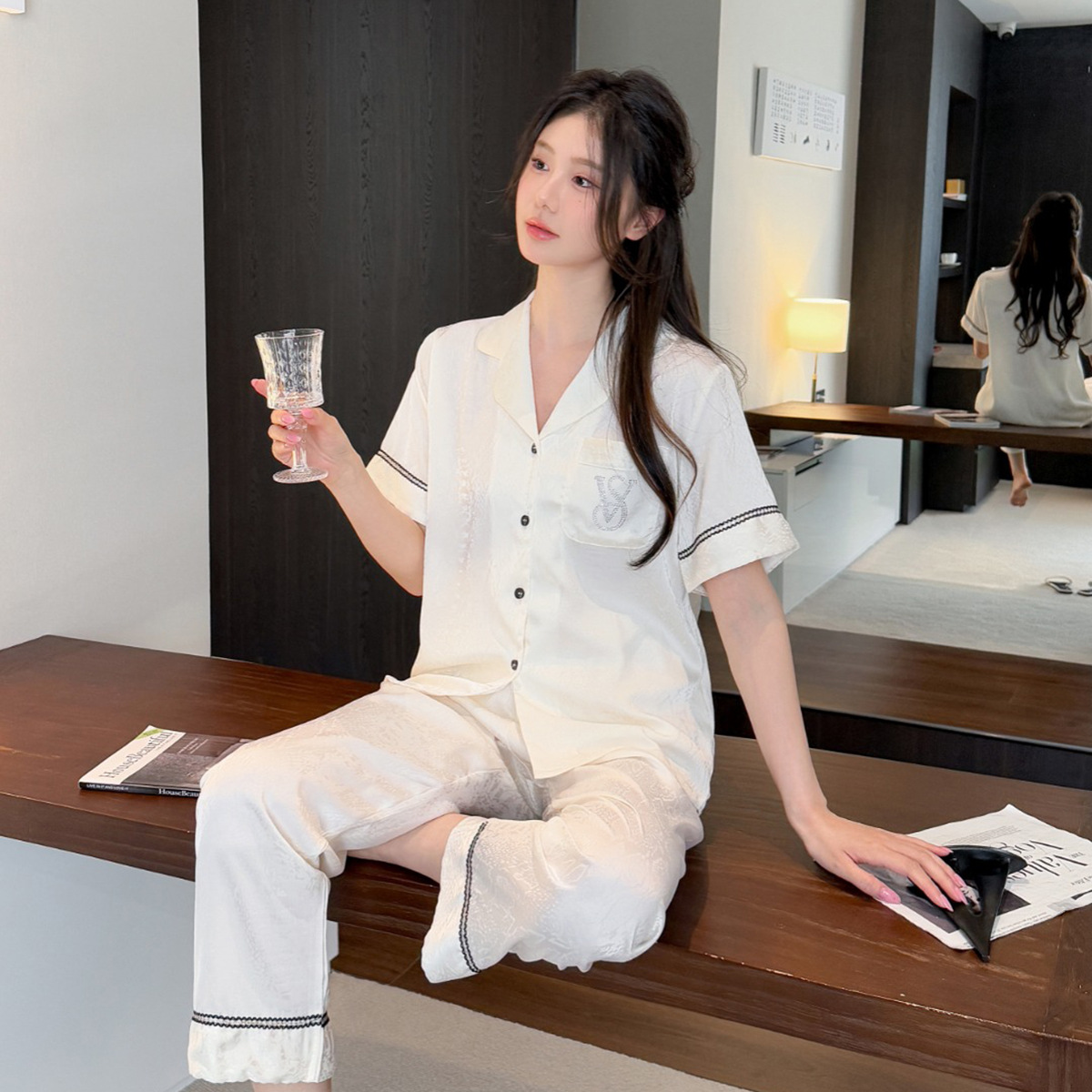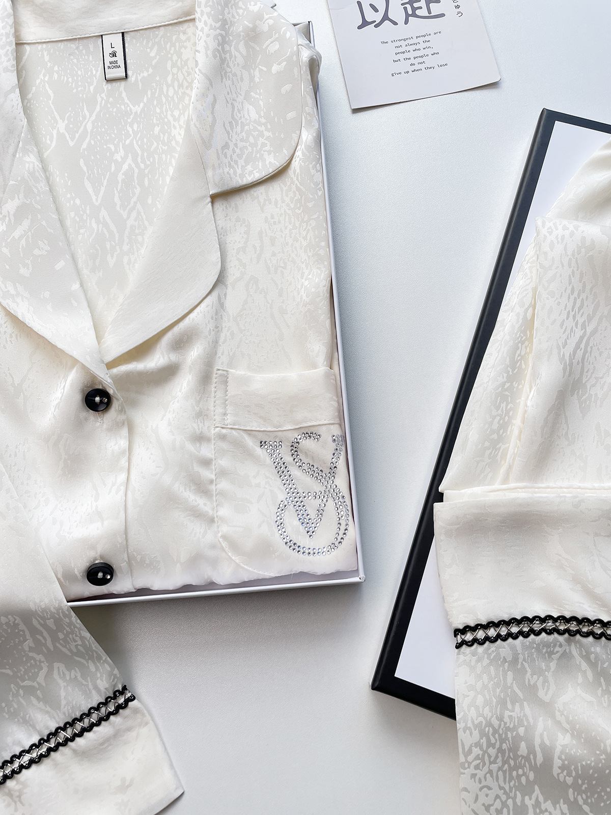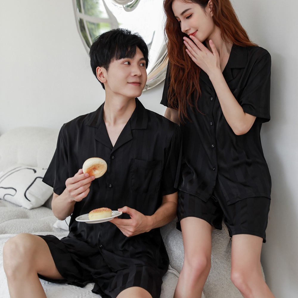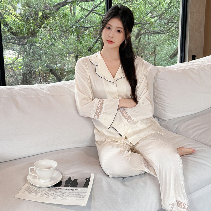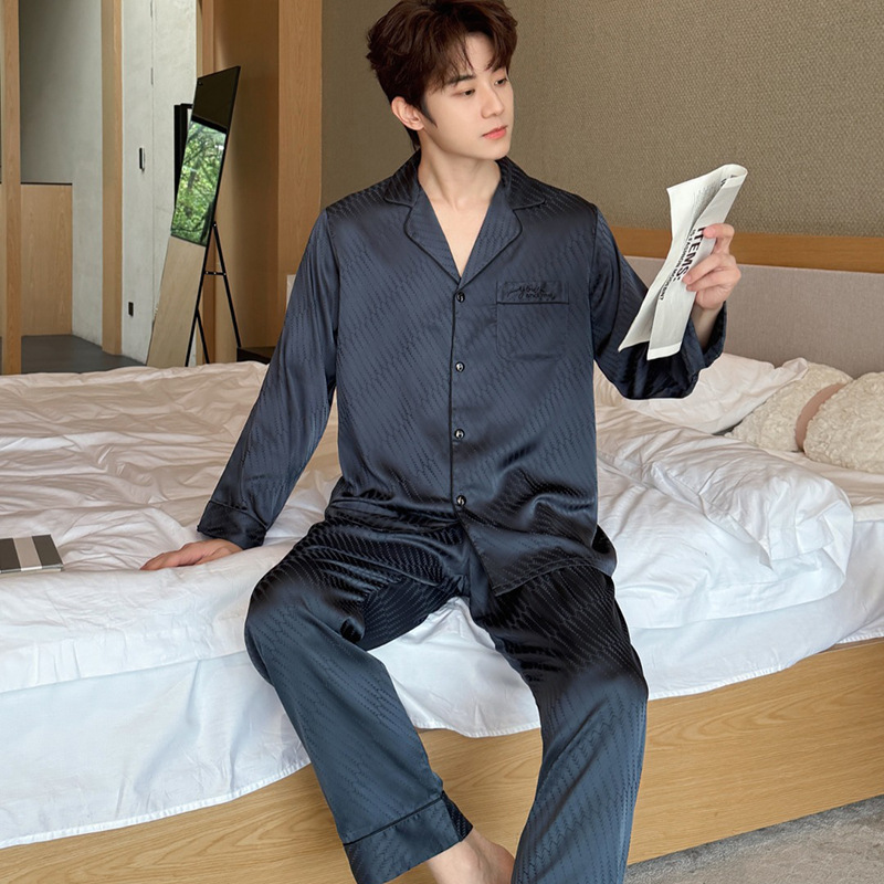 봄과 가을 새로운 높은 고정 입장 럭셔리 모조 실크 긴 소매 아이스 실크 커플 파자마 여성 하이 엔드 센스 홈 의류 남성 도매