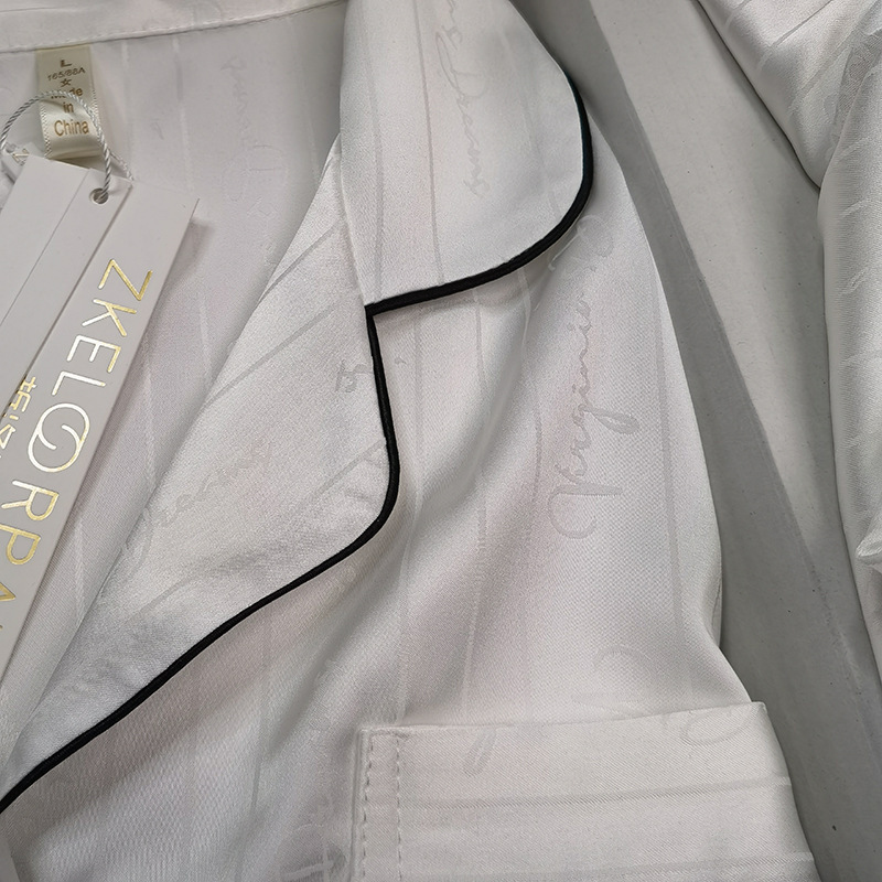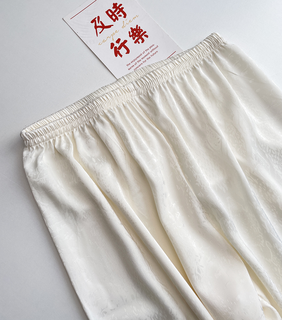• DR 자카드 리본 화이트 긴팔 팬츠