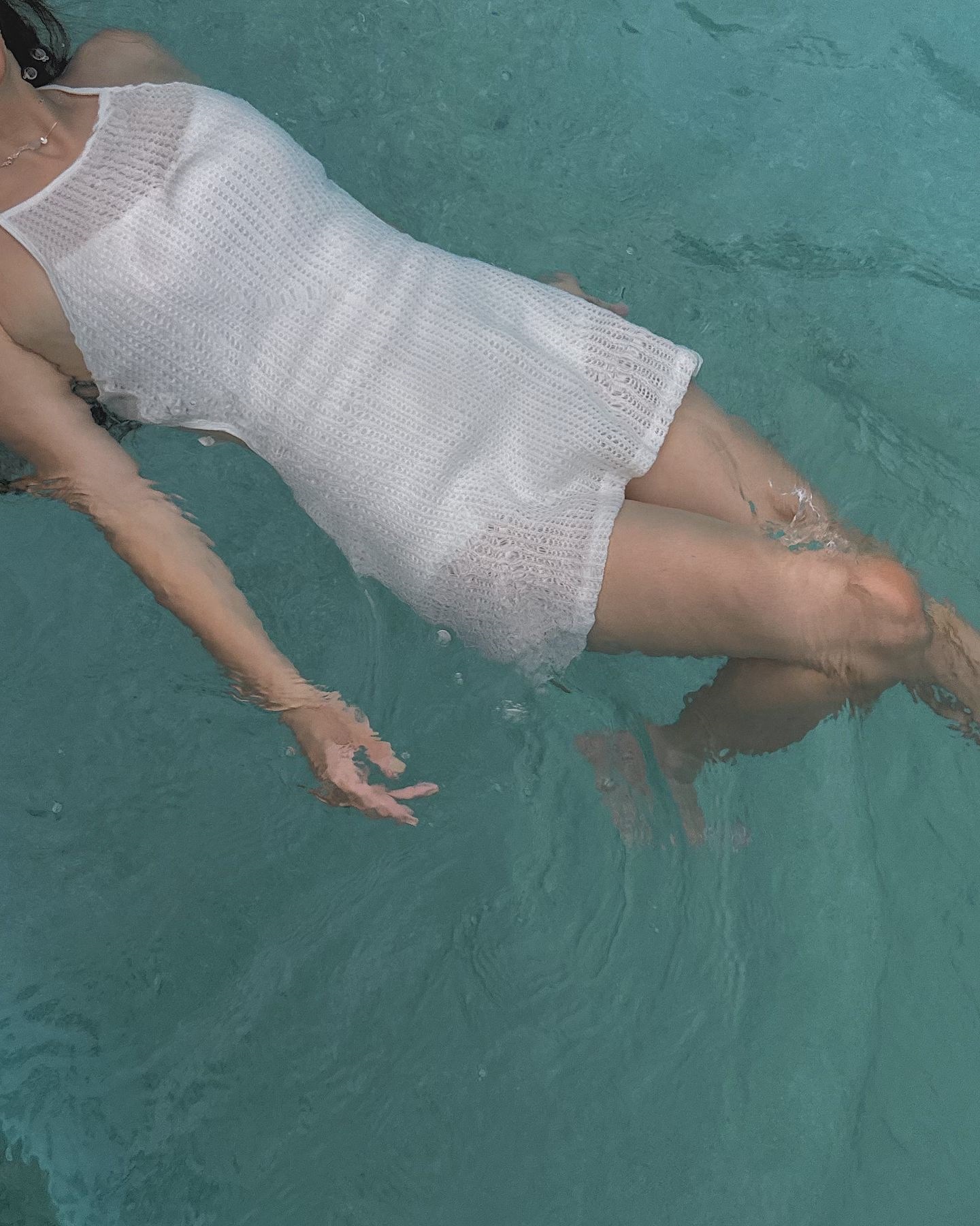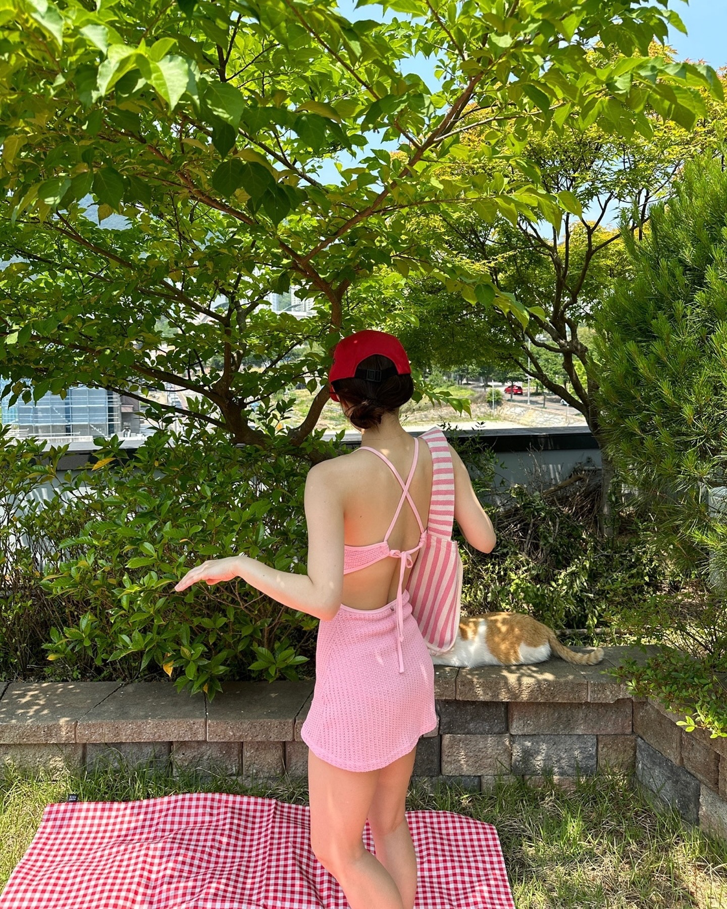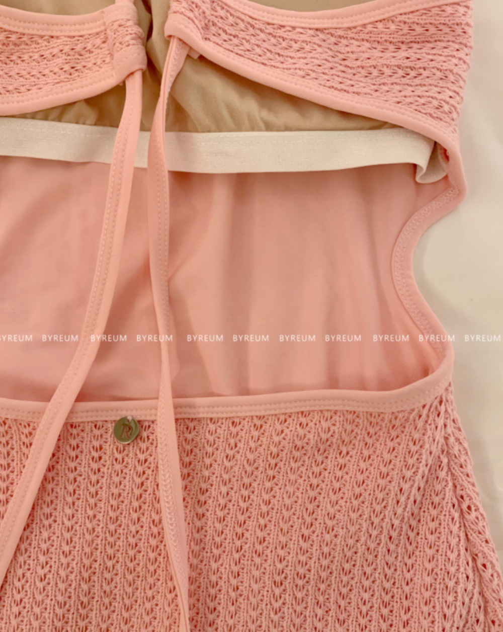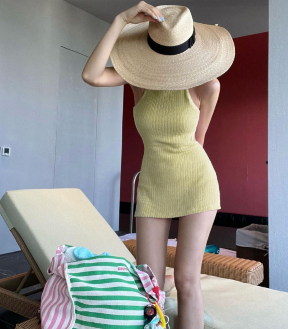 한국 2025 새로운 수영복 여성 원피스 트라이앵글 스커트 하이 엔드 퓨어 컬러 화이트 섹시 퓨어 사이드 휴가스토어 가기