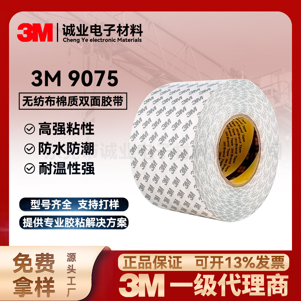 3m9075 양면 접착 부직포 접착 페이스트 0.08mm 두꺼운 면 종이 초박형 투명 높은 접착 추적 쉬운 눈물 페이스트 다이 커팅