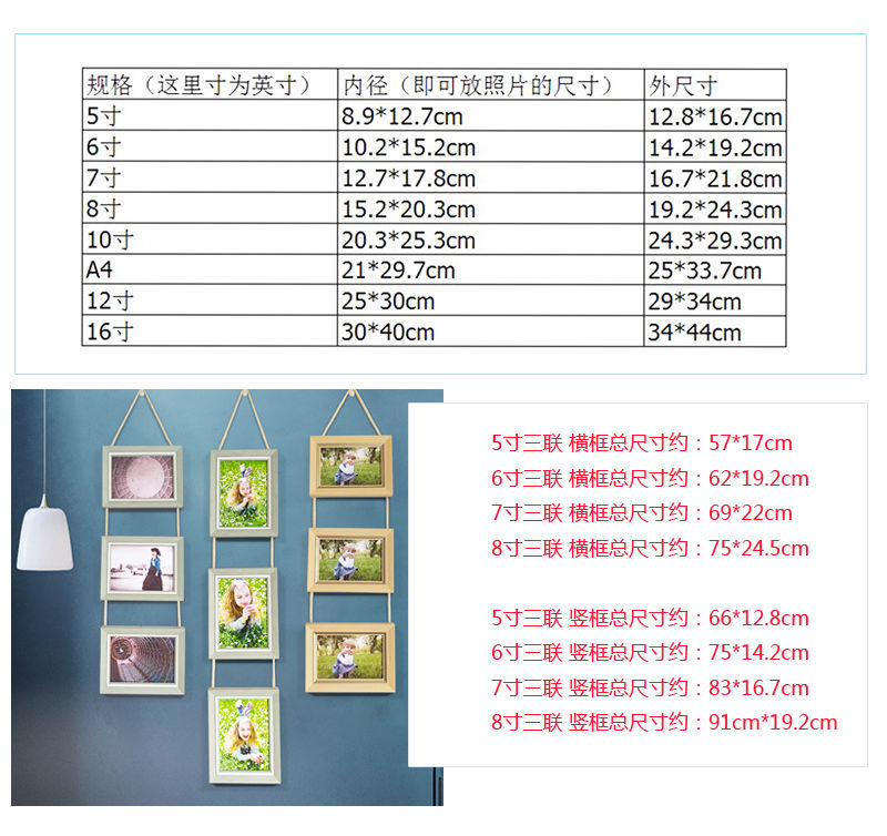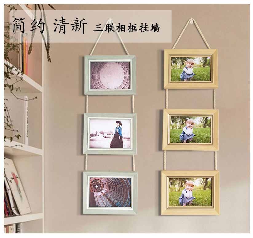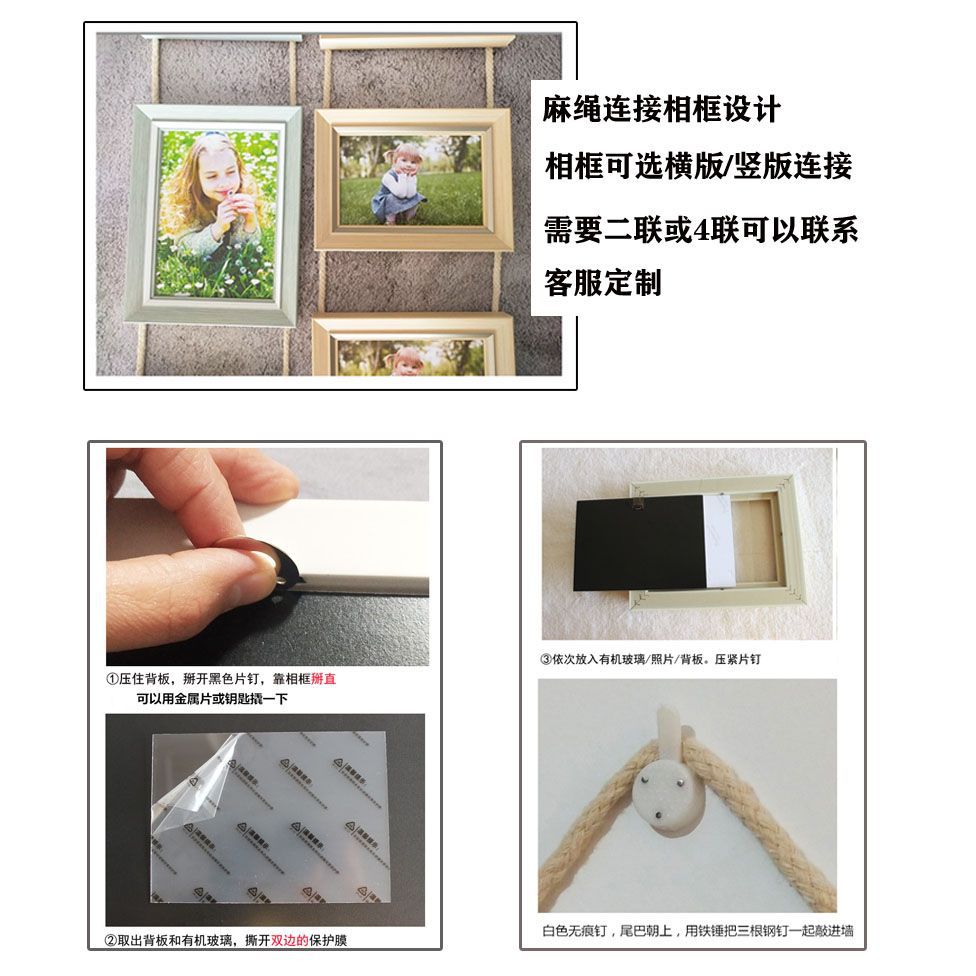 6 인치 7 인치 8 인치 포토 프레임 벽에 걸려있는 천공되지 않은 대마 로프 교수형 사진 프레임 유럽식 트리플 사진 Zhao Zhizhou스토어 가기