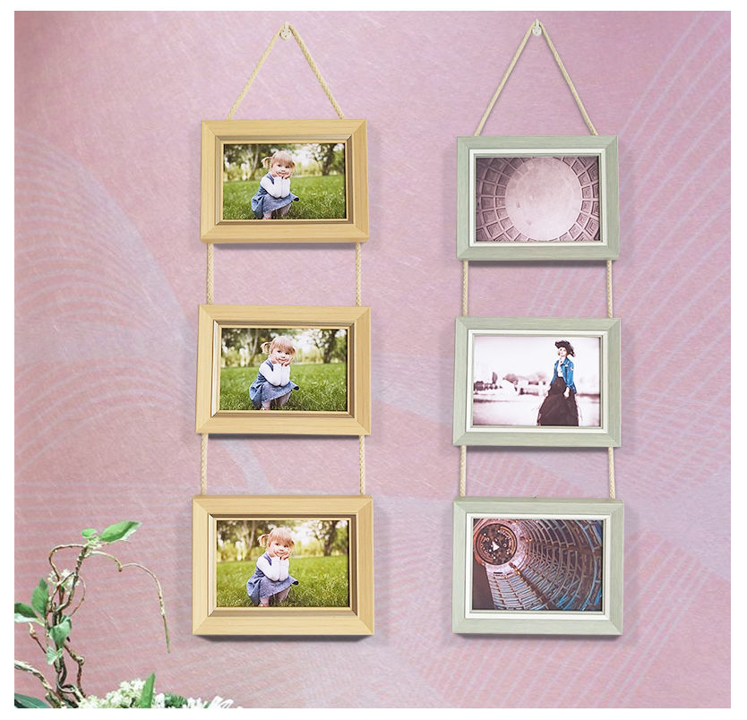 6 인치 7 인치 8 인치 포토 프레임 벽에 걸려있는 천공되지 않은 대마 로프 교수형 사진 프레임 유럽식 트리플 사진 Zhao Zhizhou