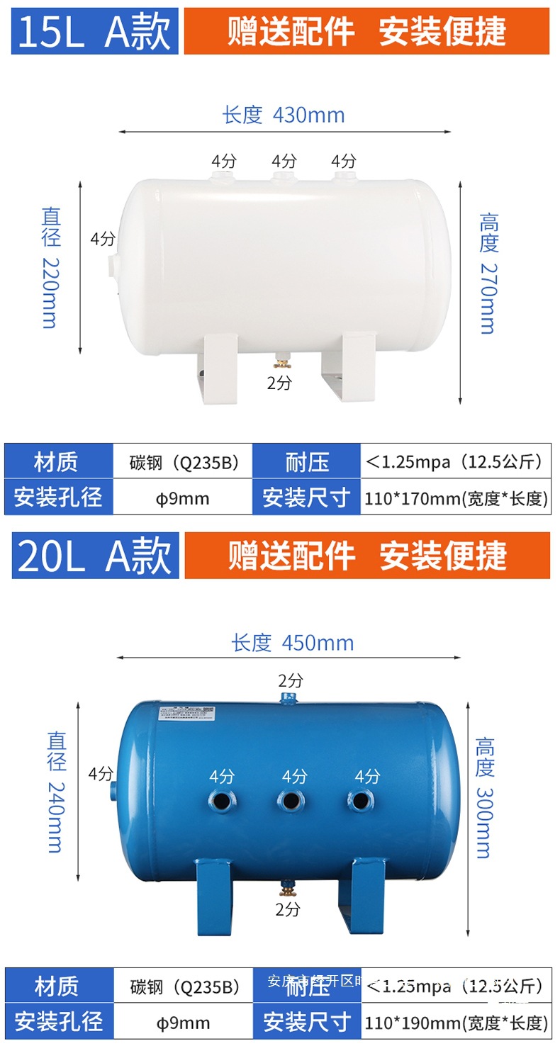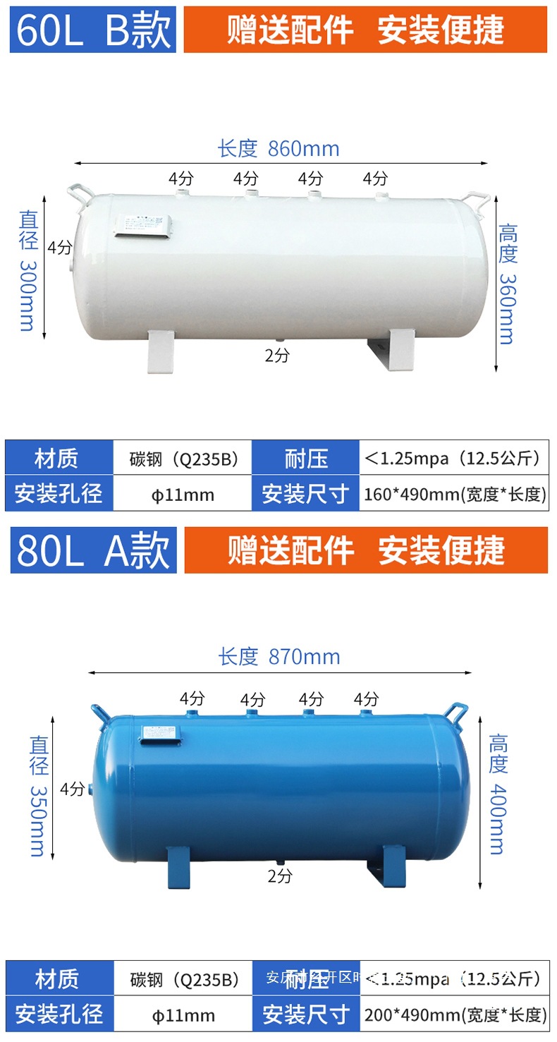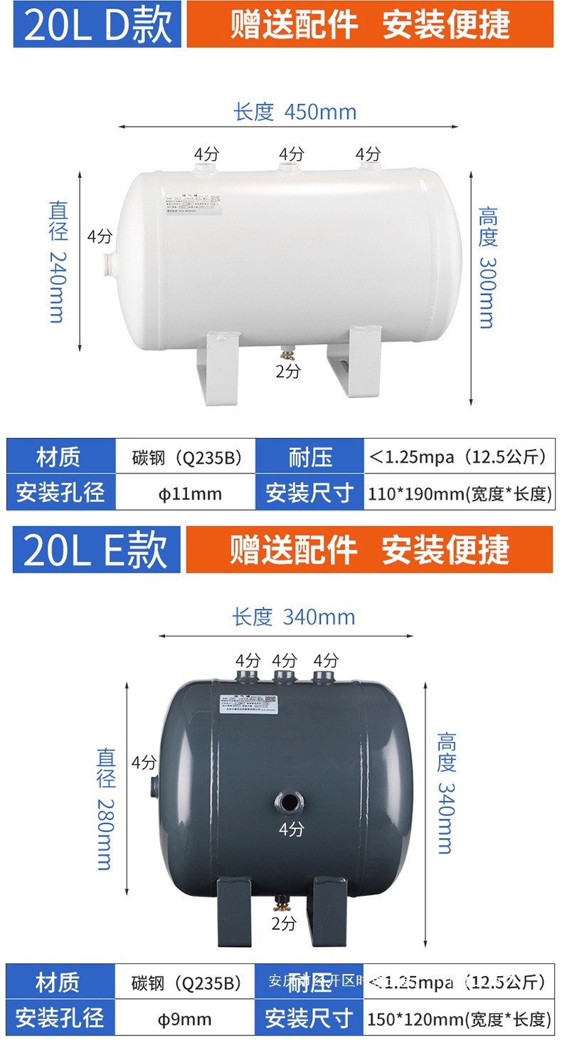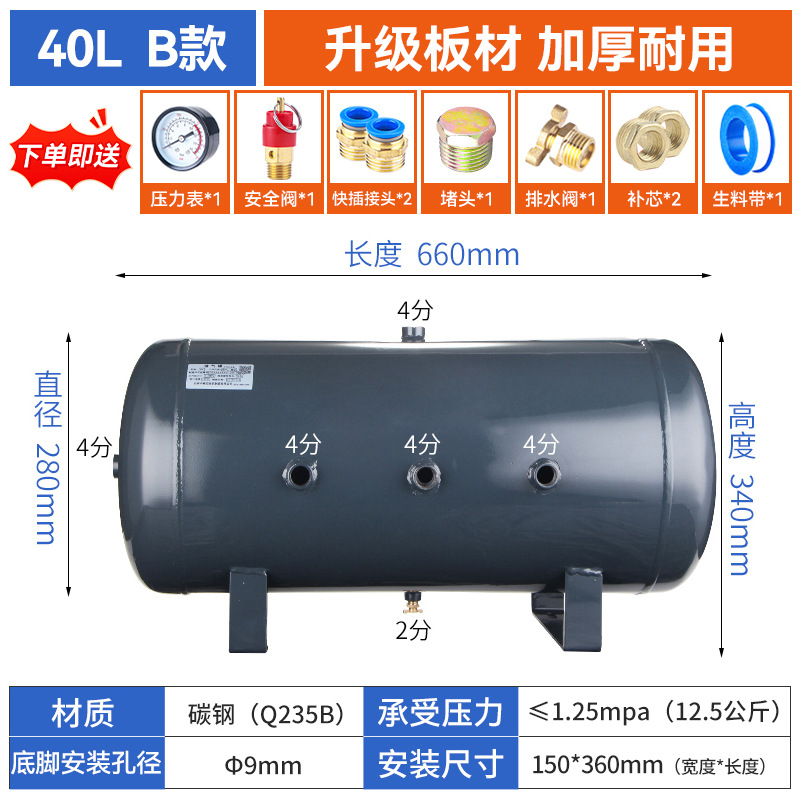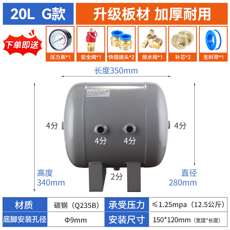 공장 공기 진공 탱크 압력 공기 실린더 20 공기 압축기 10 버퍼 저장 탱크 공기 저장 탱크 작은 100l 공장스토어 가기