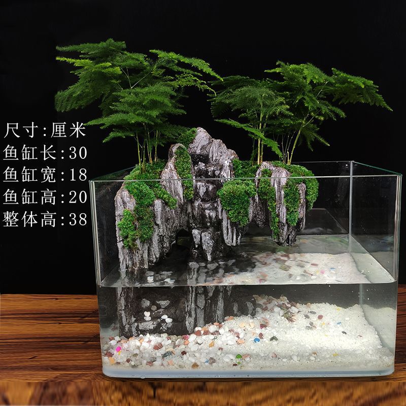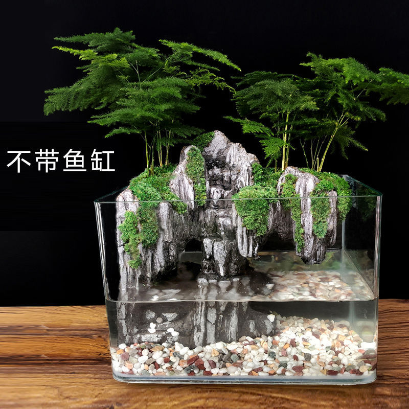 대형 어항 흐르는 물 조경 생태 미세 경관 작은 데스크탑 장식 실제 식물 아쿠아 및 육상 탱크 풍경 Jue Qin의 완전한 세트