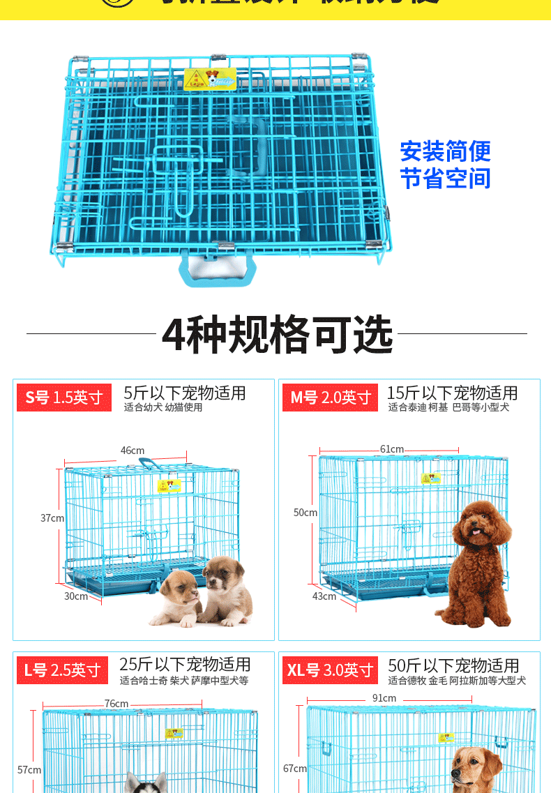 Lejia 개 케이지 고양이 케이지 애완 동물 개 큰 접는 두꺼운 황금 머리 케이지 공급 토끼 케이지 큰 개 Jue Qin