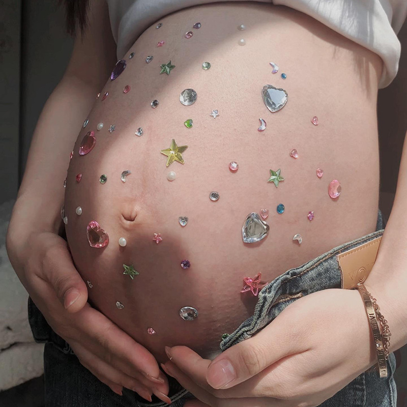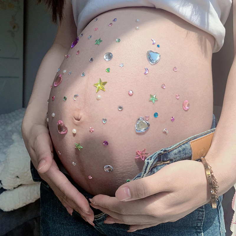 임신 한 여자 벨리 스티커 크리스탈 스티커 다이아몬드 집에서 임신 한 여자 사진 컬러 진주 사랑 스테레오 장식 Jueqin스토어 가기