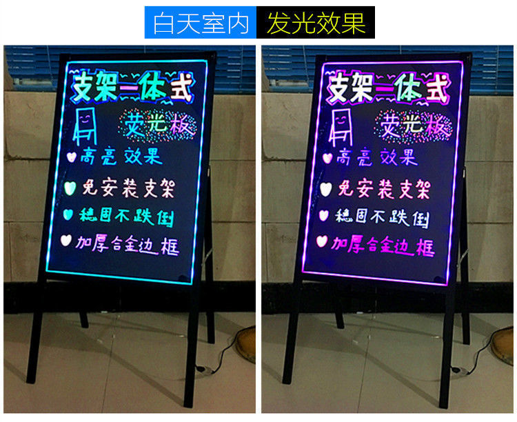 칠판 스톨 형광 보드 빌보드 빛나는 단어 매달려 작은 칠판 스탠드 유형 형광 발광 형광 손 Jueqin스토어 가기