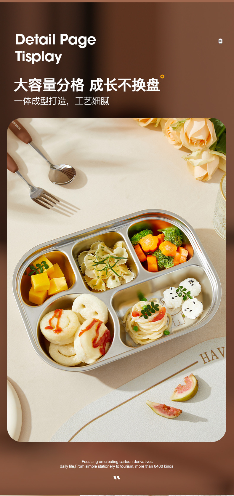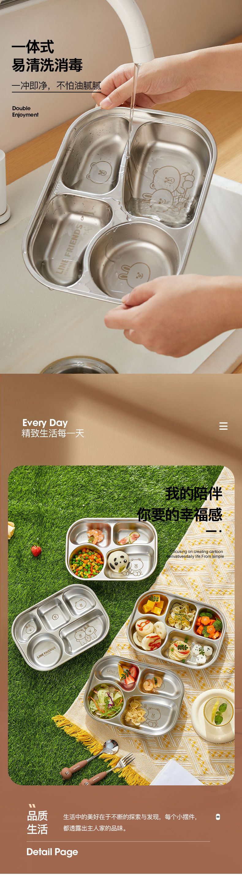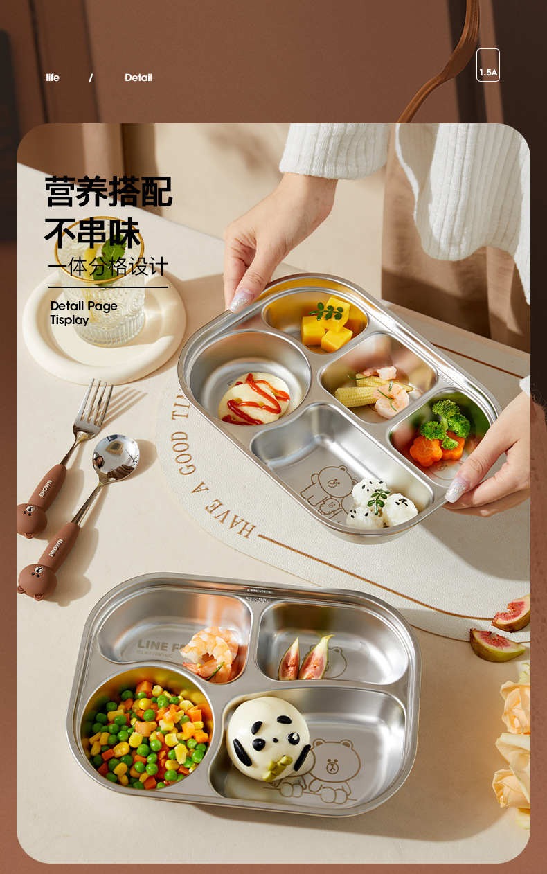 • 스테인리스 스틸 4칸 디너 플레이트 + 5칸 디너 플레이트