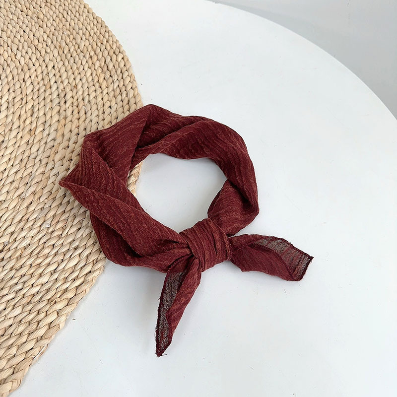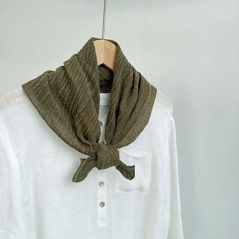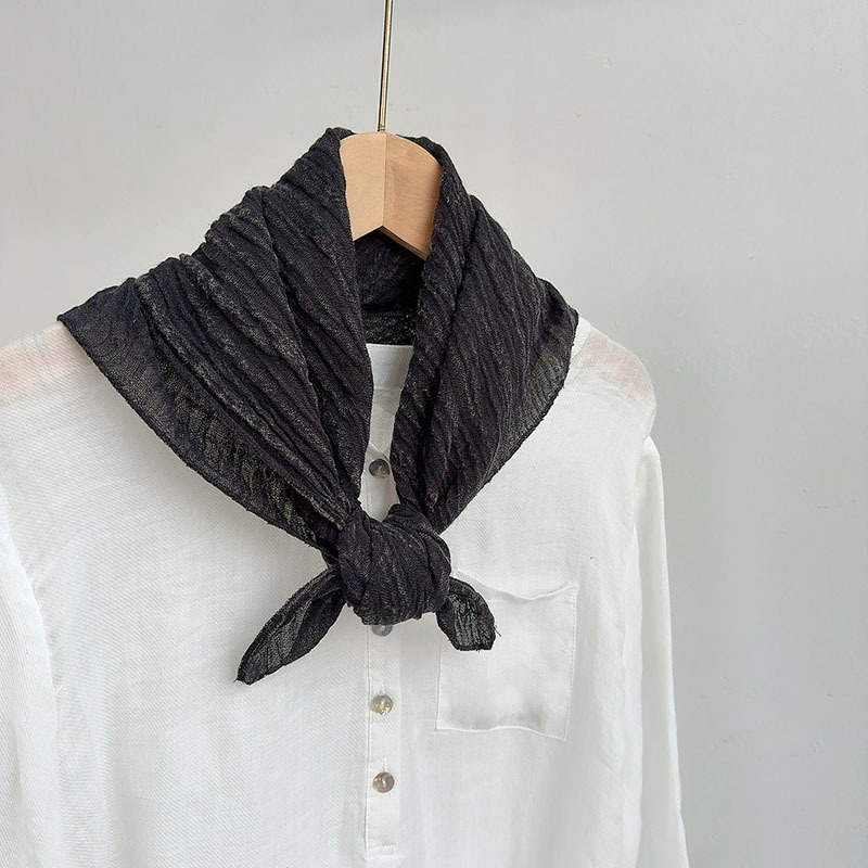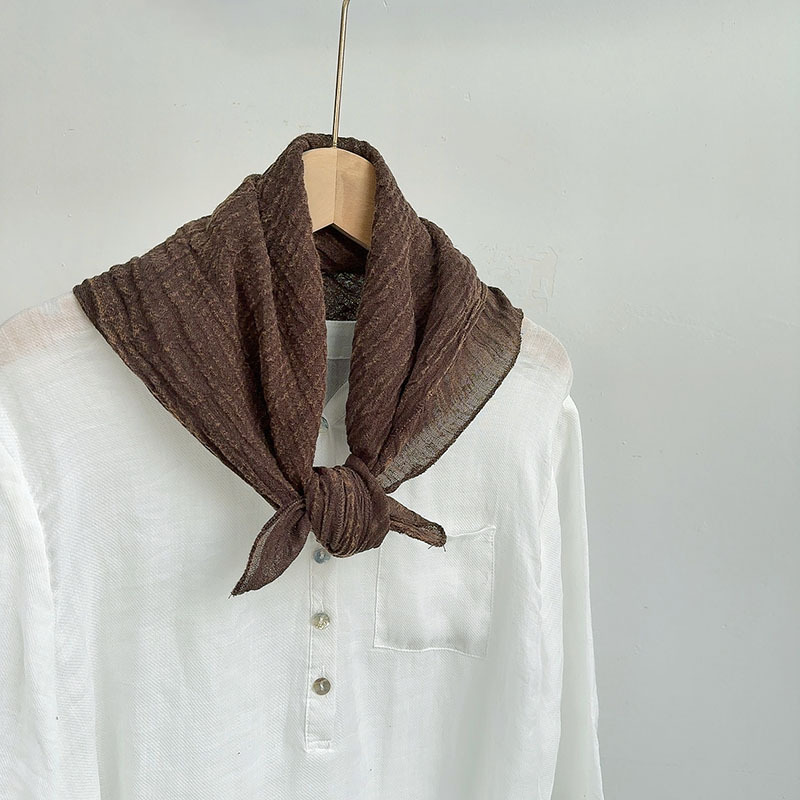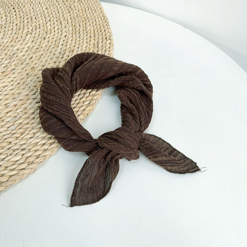 봄과 가을 빈티지 염료 오래 된 리넨 주름 작은 광장 스카프 예술 올 매치 여름 목 보호 작은 실크 스카프 여성 머리띠 액세서리