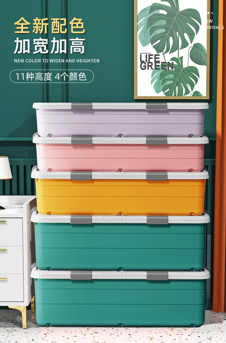 침대 아래 보관 상자 플라스틱 벨트 풀리 옷 이불 침대 아래 플랫 보관 신발스토어 가기
