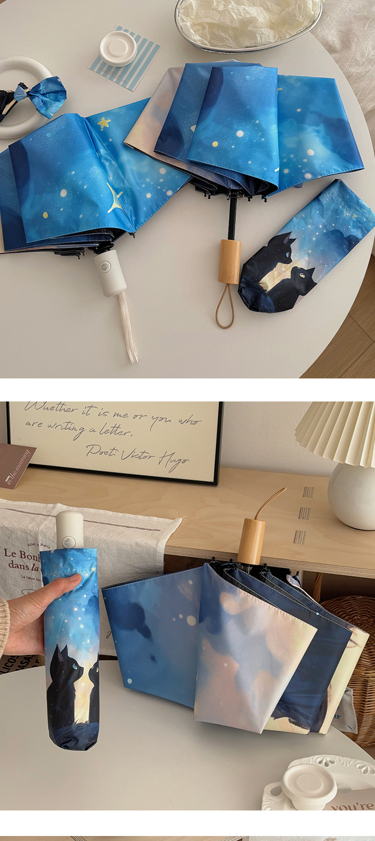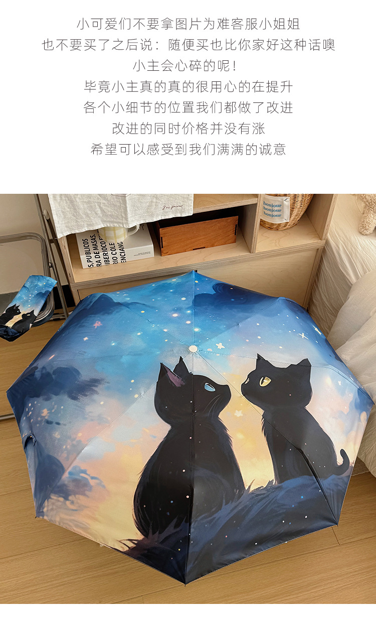 귀여운 만화 커플 검은 고양이 접히는 우산 햇빛과 비 이중 사용 태양 보호 자외선 보호 태양 우산 자동 파라솔스토어 가기