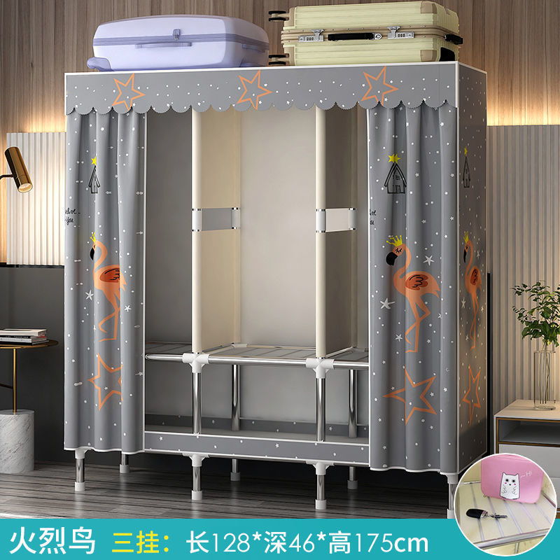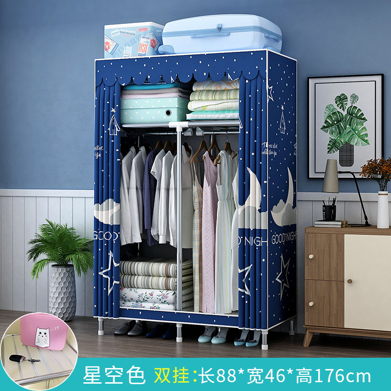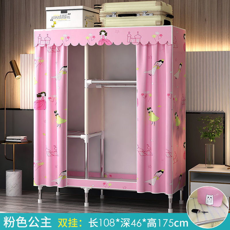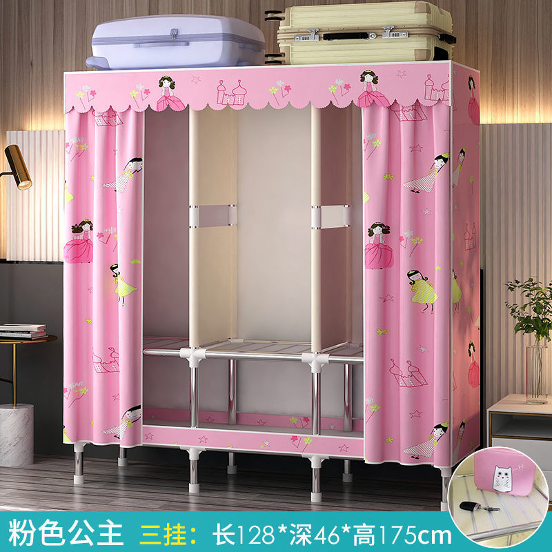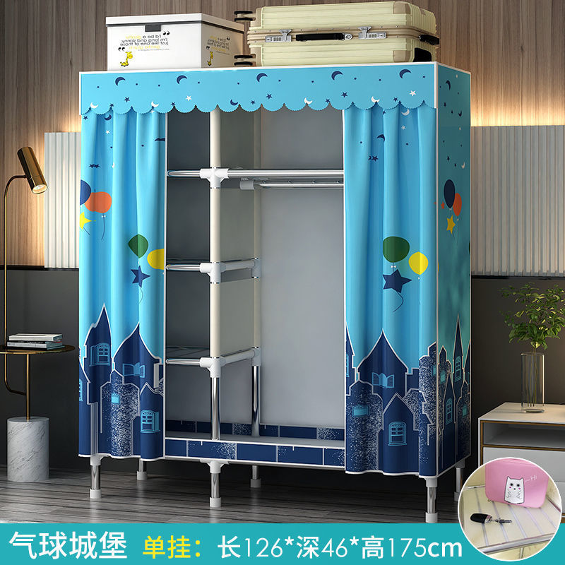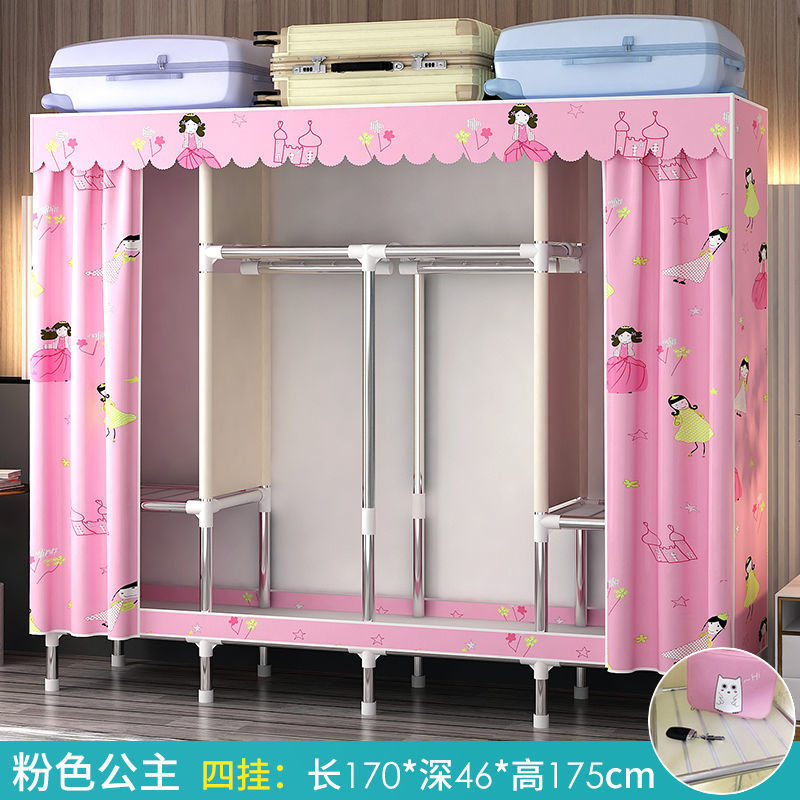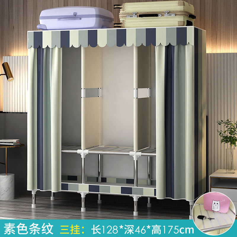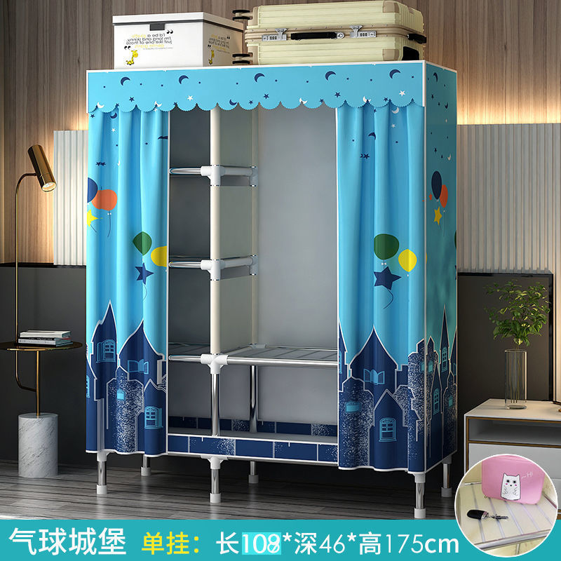 간단한 옷장 홈 임대 방 용 침실 천 옷장 강력하고 튼튼한 조립 간단한 현대 풀 스틸 프레임 옷장