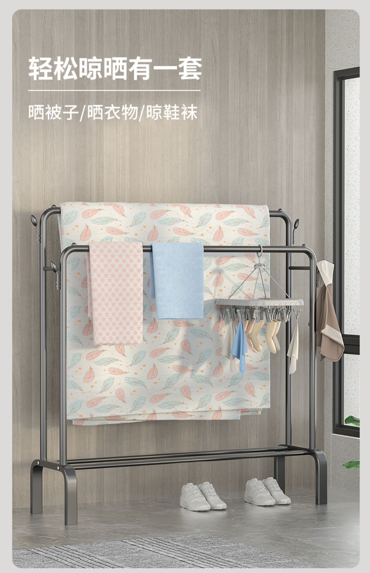건조 랙 바닥 서 접는 가구 건조 랙 발코니 침실 옷걸이 실내 간단한 단일 극 옷