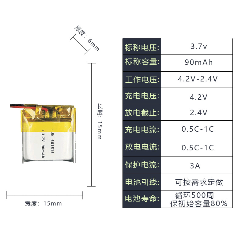 • 601515-90mAh 배터리 셀