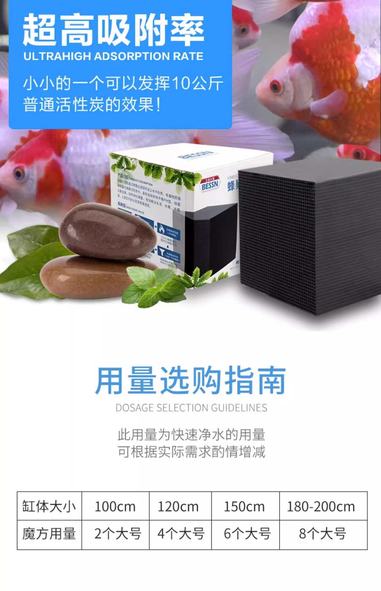 BESSN 브랜드 생선 탱크 활성탄 필터 재료 정수 루빅스 큐브 노란색 제거 물 벌집 공기 탱크 필터 재료 물 고블린스토어 가기