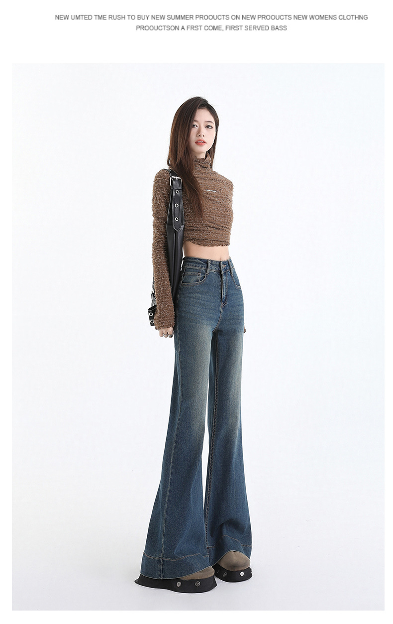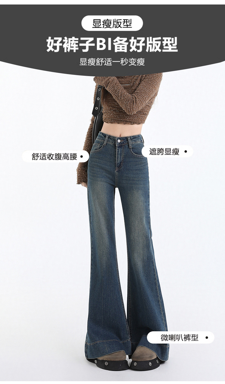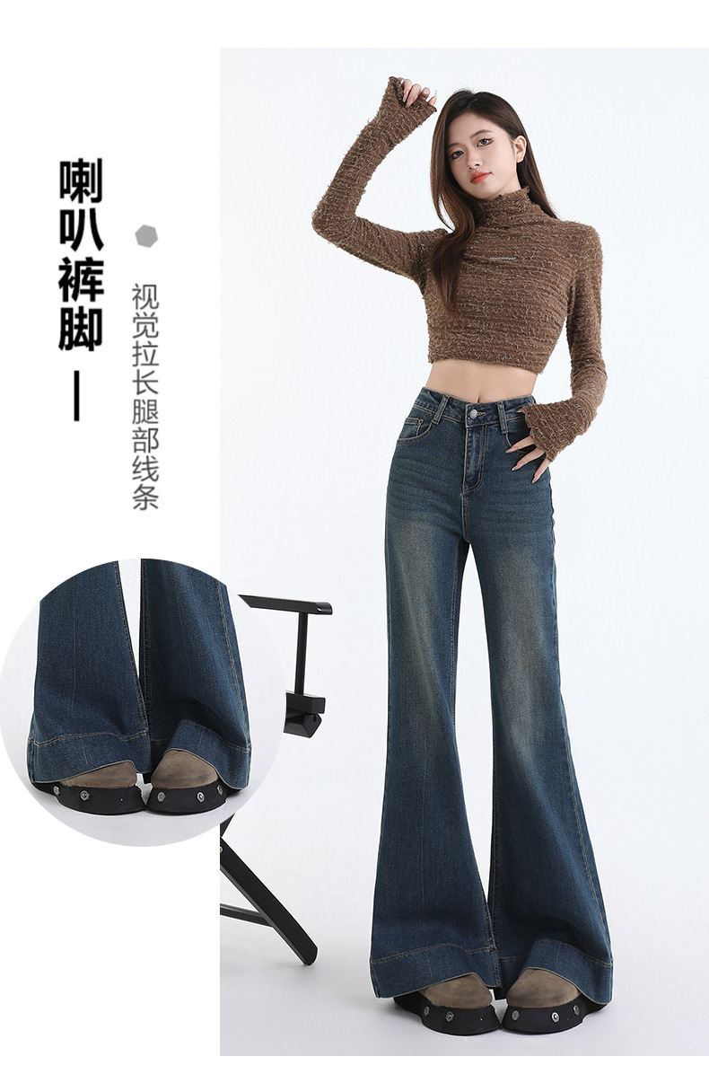 봄과 가을의 슬림없는 청바지 여성의 높은 허리 느슨한 슬림 핏 슬리밍 아메리칸 스타일 레트로 블루 롱 벨 바지스토어 가기