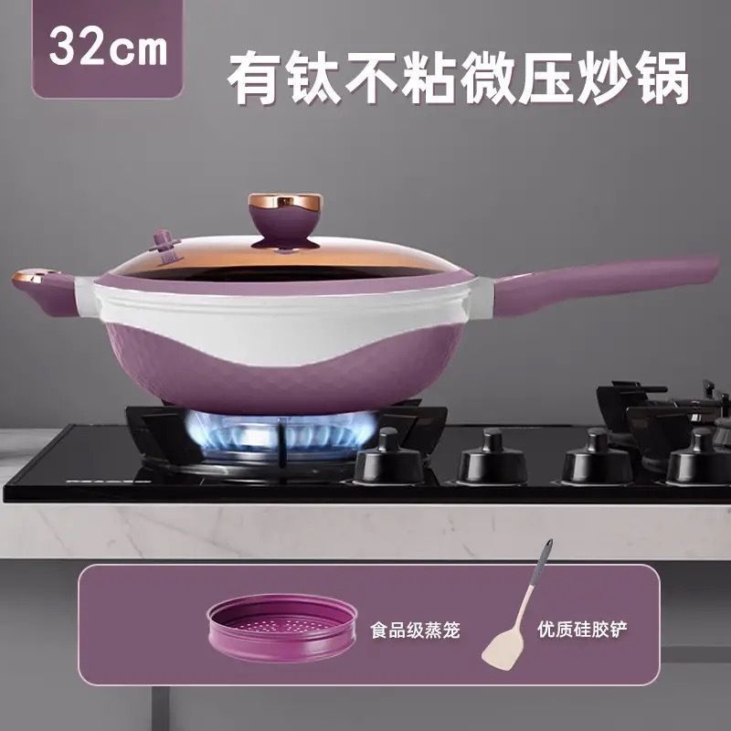 2 색 티타늄 합금 가정용 6 세대 비 스틱 팬 워크 마이크로 압력 풀 레인지 유니버설 코팅되지 않은 요리스토어 가기
